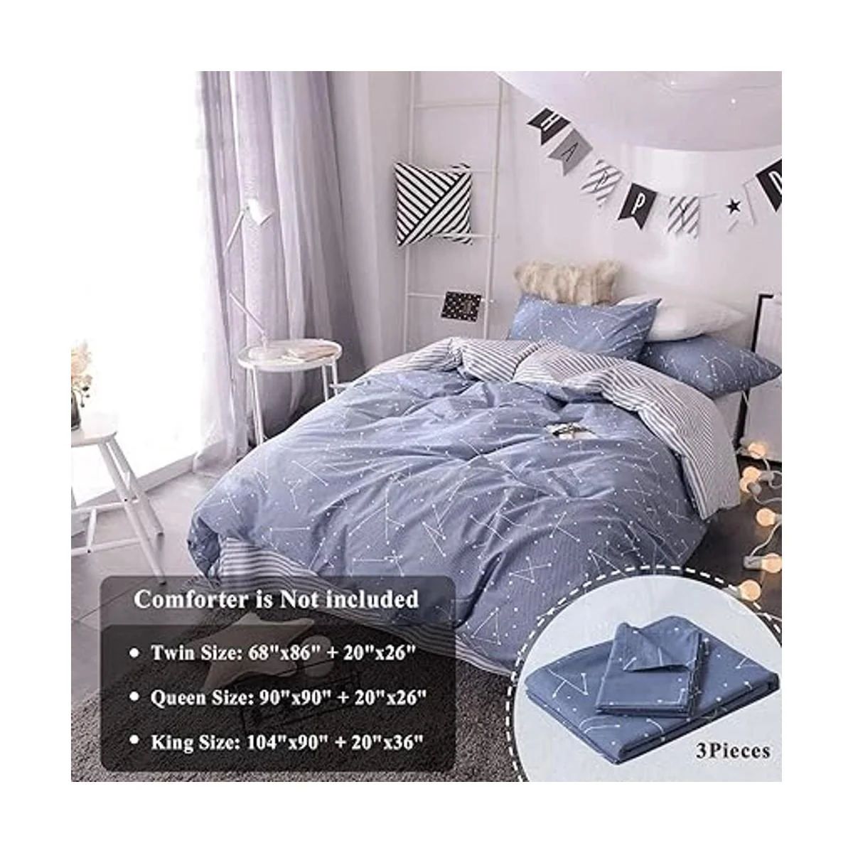 VM VOUGEMARKET Juego de funda de edredón de algodón 100 con patrón de impresión, juego de cama individual Queen King con cierre de cremallera para niños y adultos