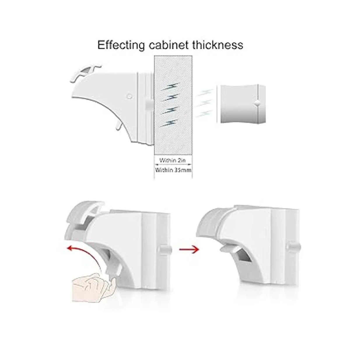 Invisible desde el exterior: las cerraduras mejoradas se instalan dentro de armarios o cajones, completamente ocultas de niños e invitados, haciendo que tu hogar sea más atractivo, mientras que también proporcionan una protección ideal para los niños.
