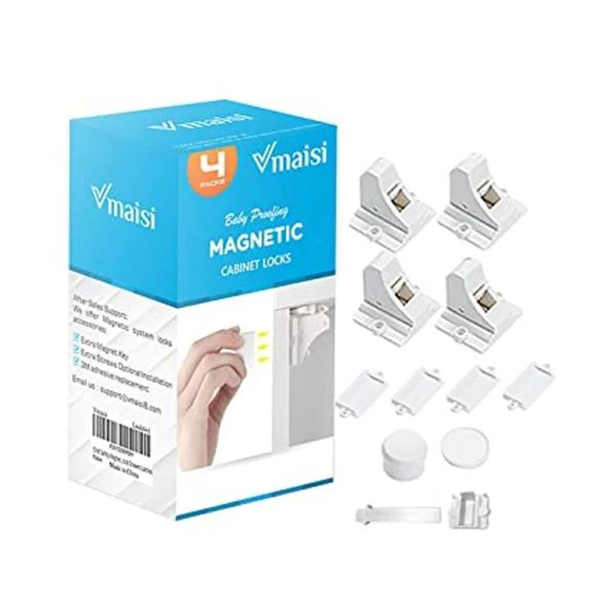Vmaisi Cerraduras magnéticas para gabinetes y cajones de seguridad para niños, paquete de 4 unidades, adhesivos a prueba de bebés