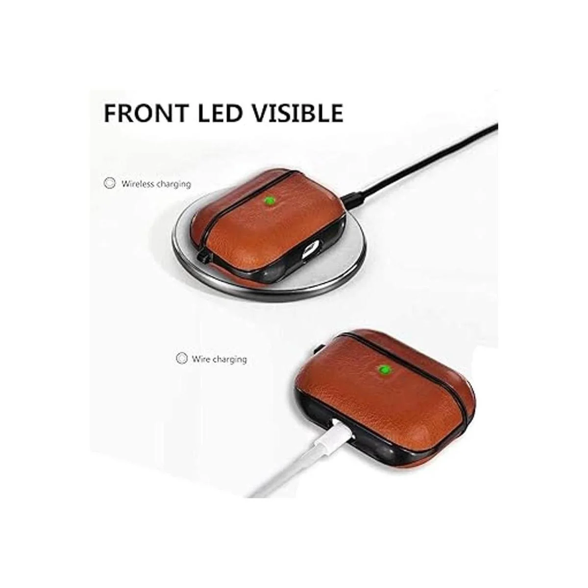 VMORO Compatible con Airpods Pro Funda de cuero genuino para Airpod Pro para Airpods Pro, funda protectora para hombres y mujeres, LED frontal visible, color marrón