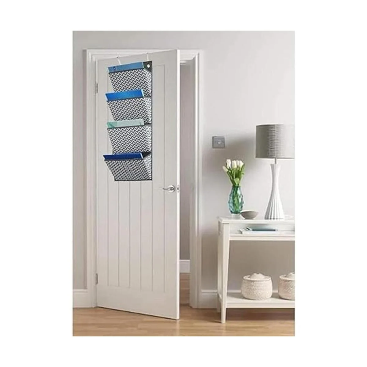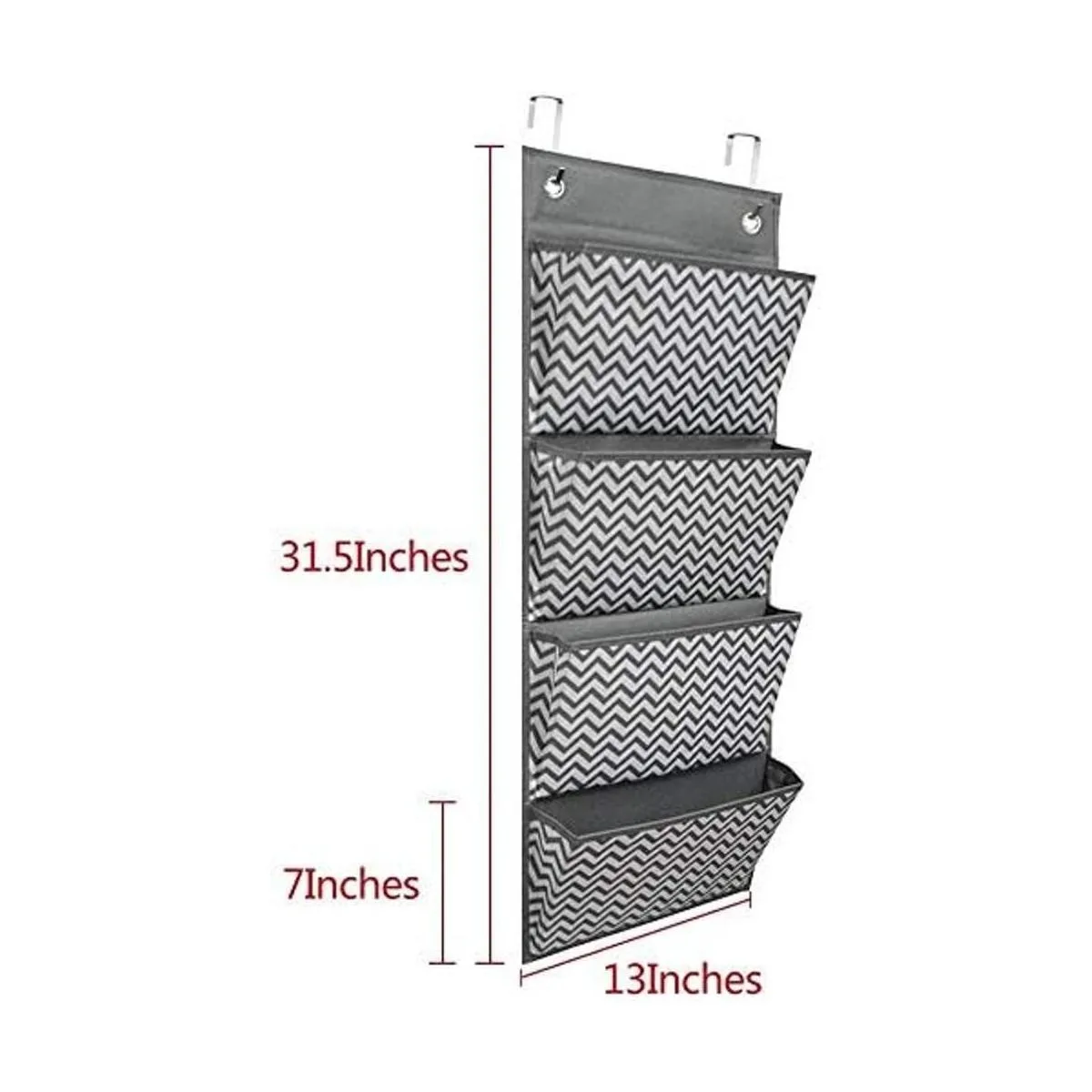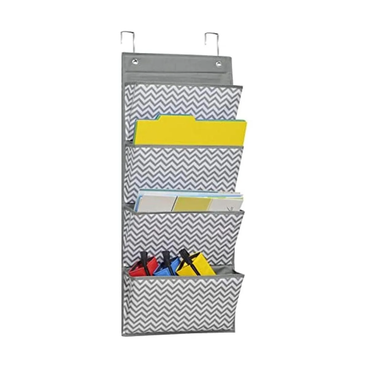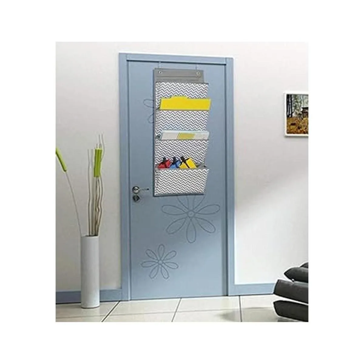 VNOM Organizador de carpetas de pared colgante para oficina, almacenamiento de archivos montado en la pared, 4 bolsillos sobre la puerta, organizador para revistas, cuadernos, planificadores, 2 ganchos para puerta incluidos, patrón de cheurón gris