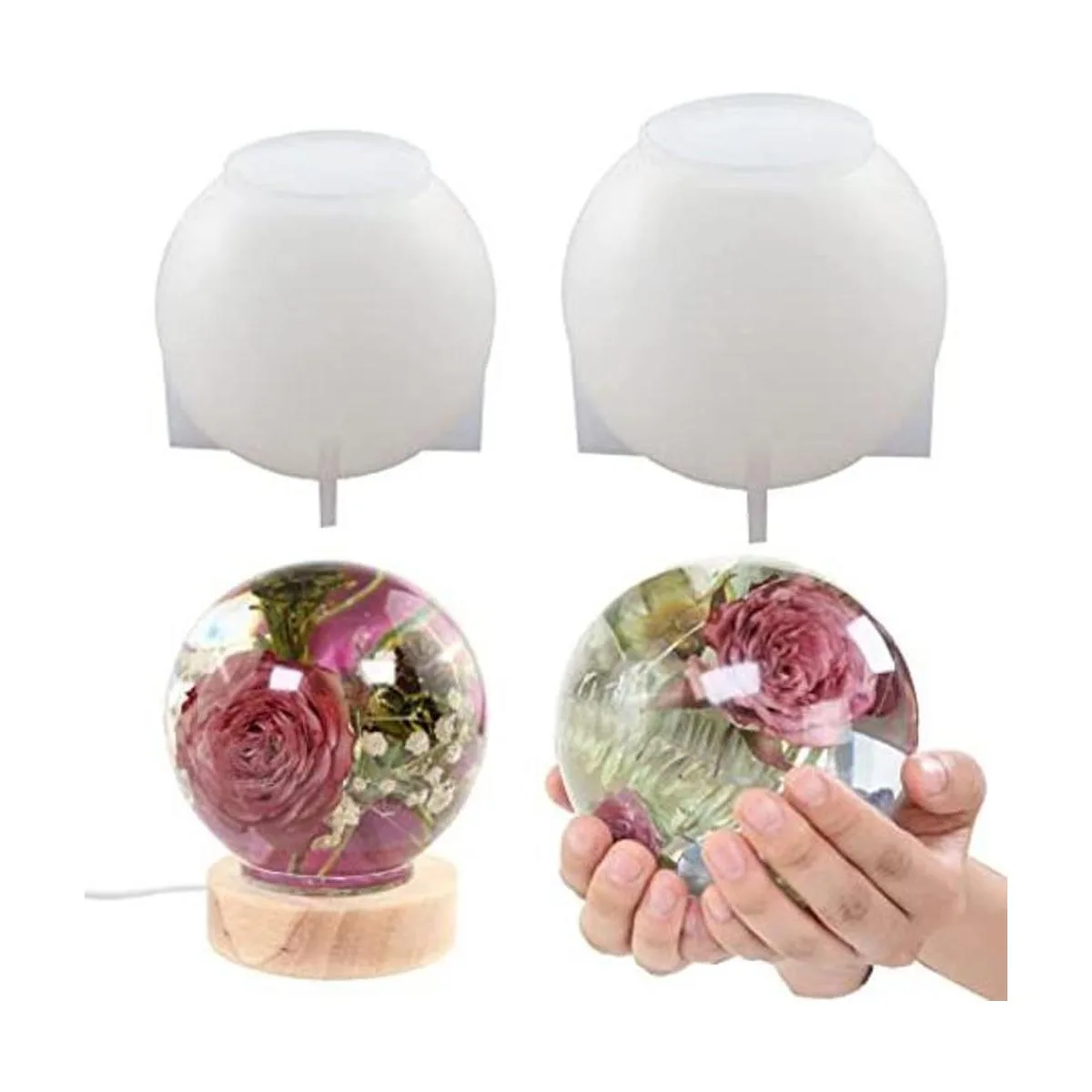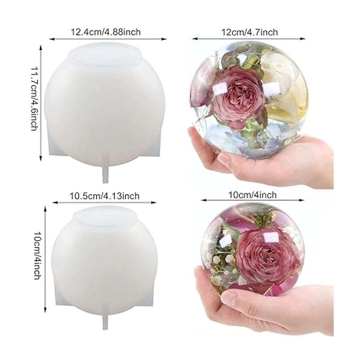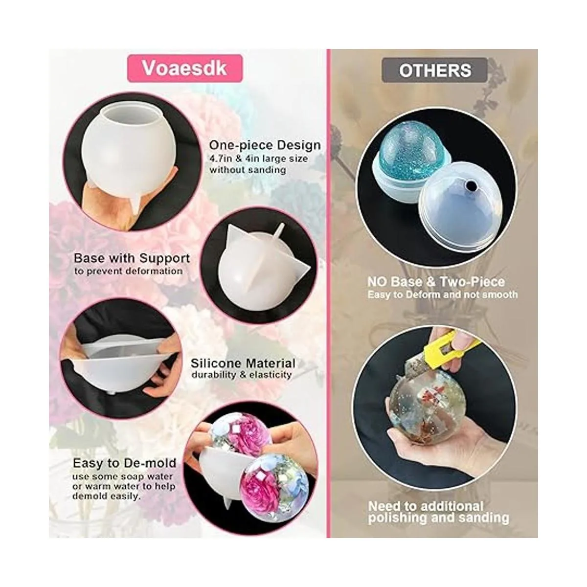 Voaesdk 2 moldes de resina de esfera grande, moldes de resina de silicona de bola de cristal de 4.7 pulgadas y 4 pulgadas para preservación de flores, moldes de resina epoxi de orbe sin costuras para bricolaje de resina, arte de velas, decoración del hogar