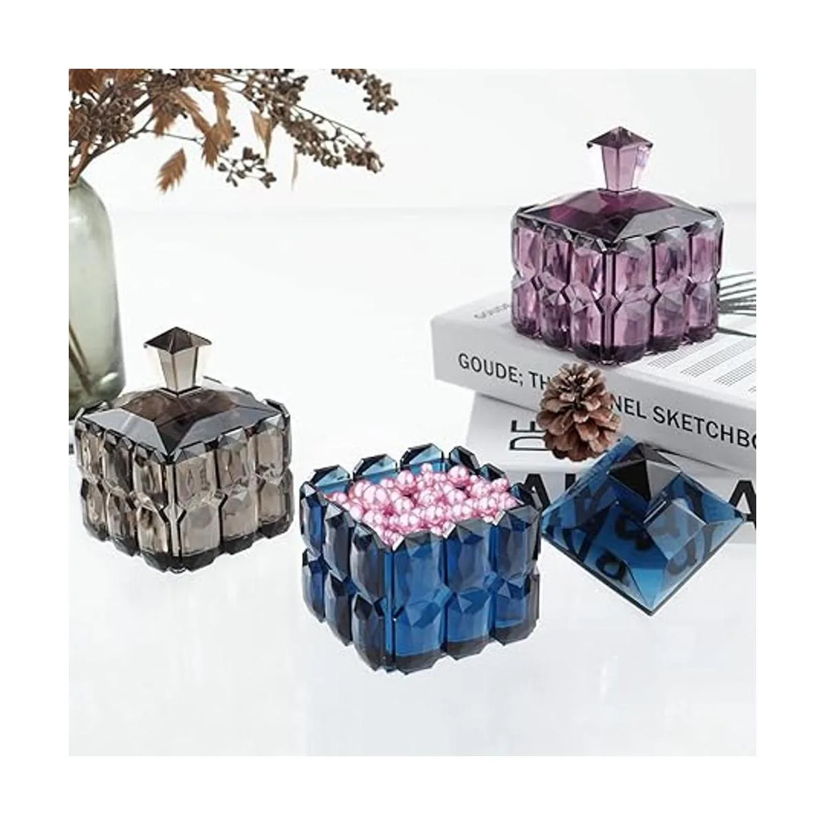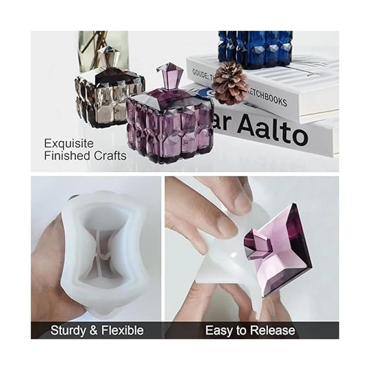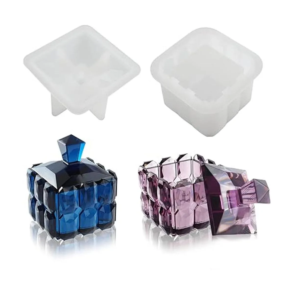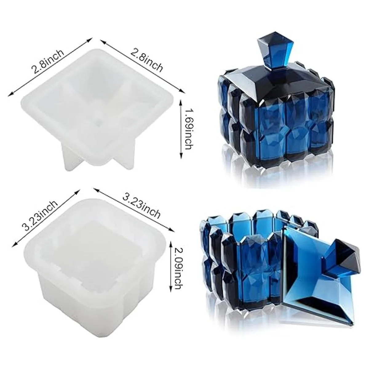 Voaesdk Caja de almacenamiento de resina con tapa, molde de silicona para tarro facetado de diamante, molde de tarro de resina para resina epoxi, joyería de bricolaje, contenedor de caramelos, portavelas para decoración del hogar, organizador de regalo
