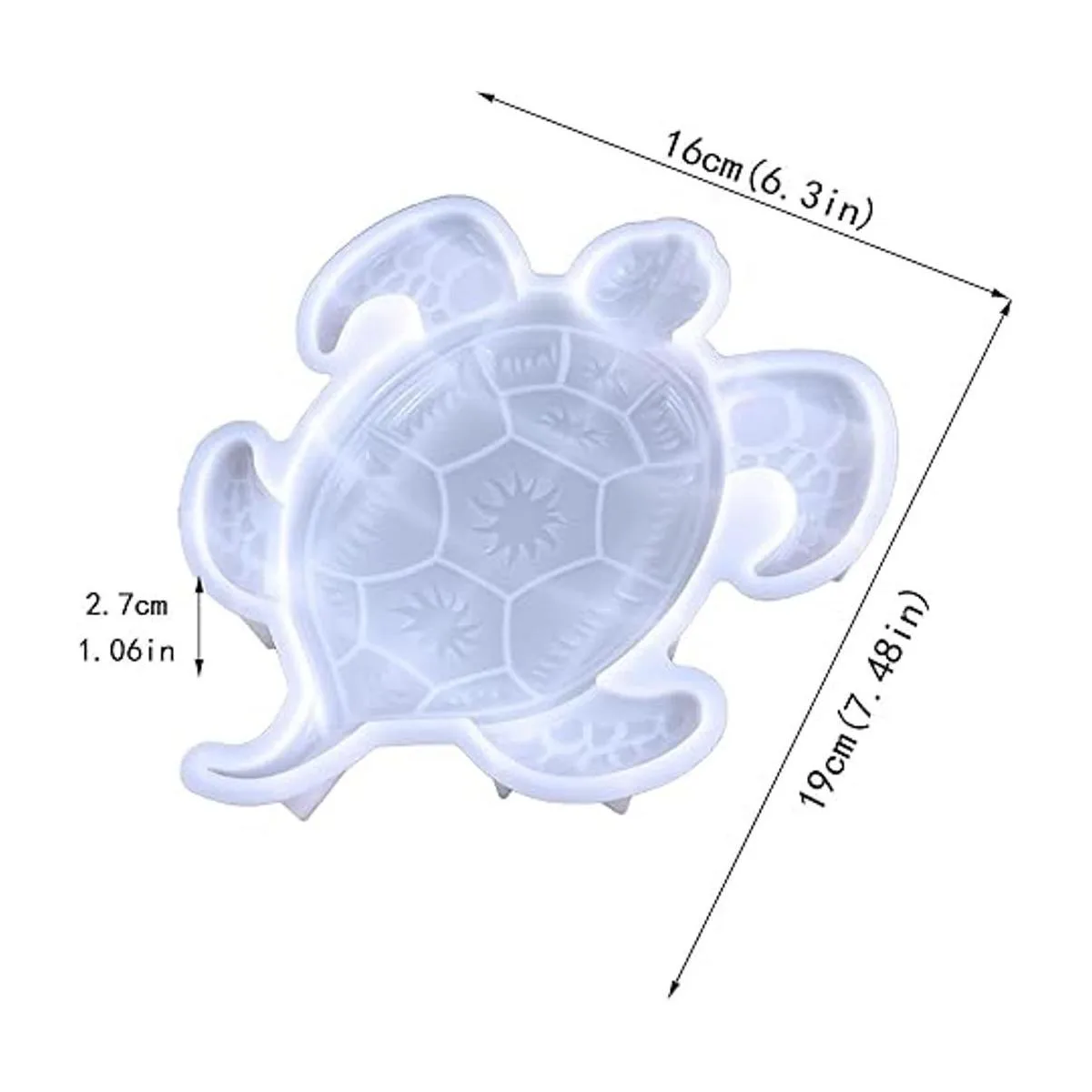 Moldes de resina con forma de tortuga marina: recibirás 1 molde grande de tortuga marina con 7.48 x 6.3 x 1.06 pulgadas, que necesita aproximadamente 8.4 onzas de resina. Perfecto para decoración de escritorio y adorno colgante de pared.