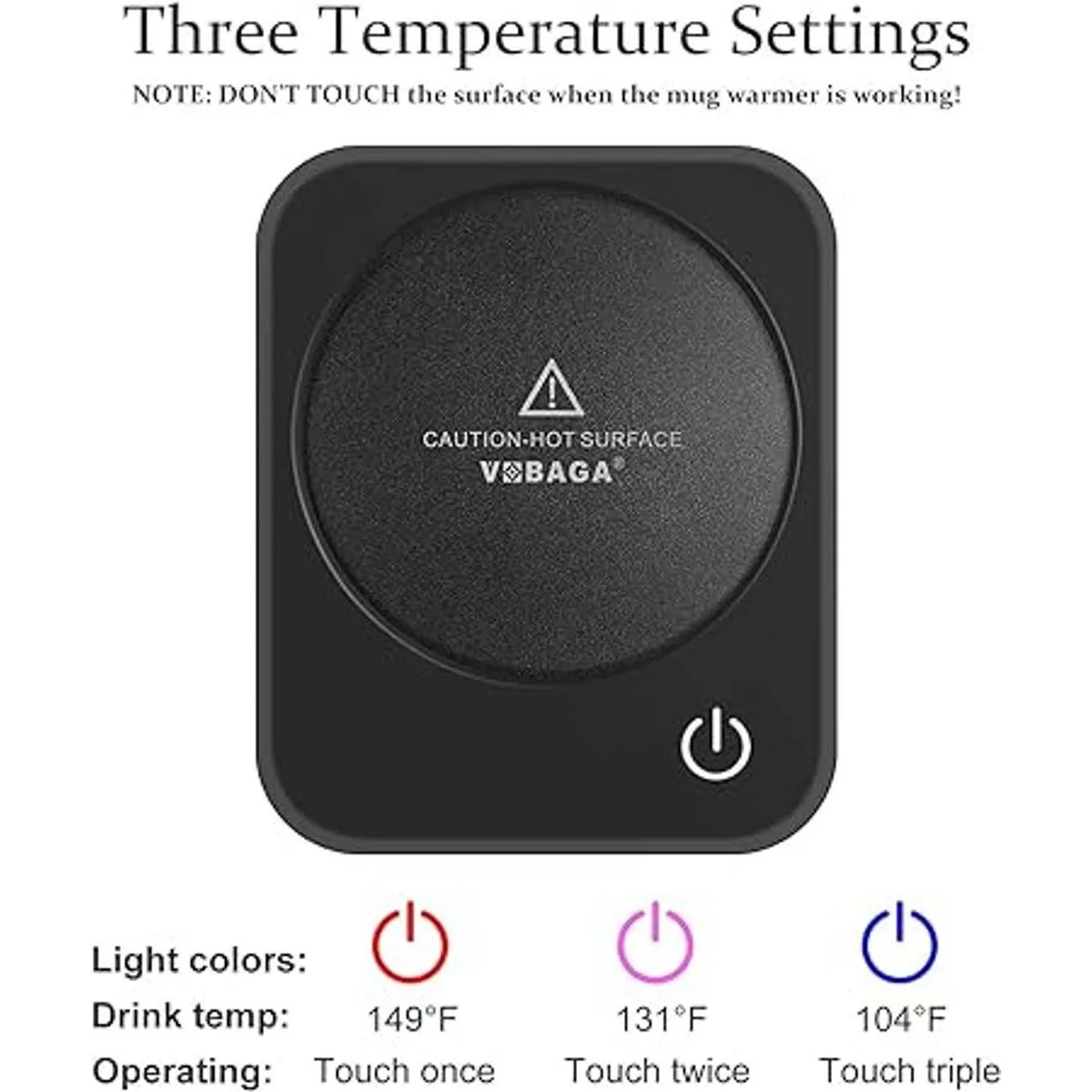 Ajuste ajustable de tres temperaturas: el calentador de café VOBAGA mantendrá tu café a una temperatura de bebida perfecta. Puede controlar la temperatura pulsando el botón, manteniendo su café o leche hasta 104 F131 F149 F 104.0 F131.0 F149.0 F. Cambiar la temperatura es solo un toque en el dedo.