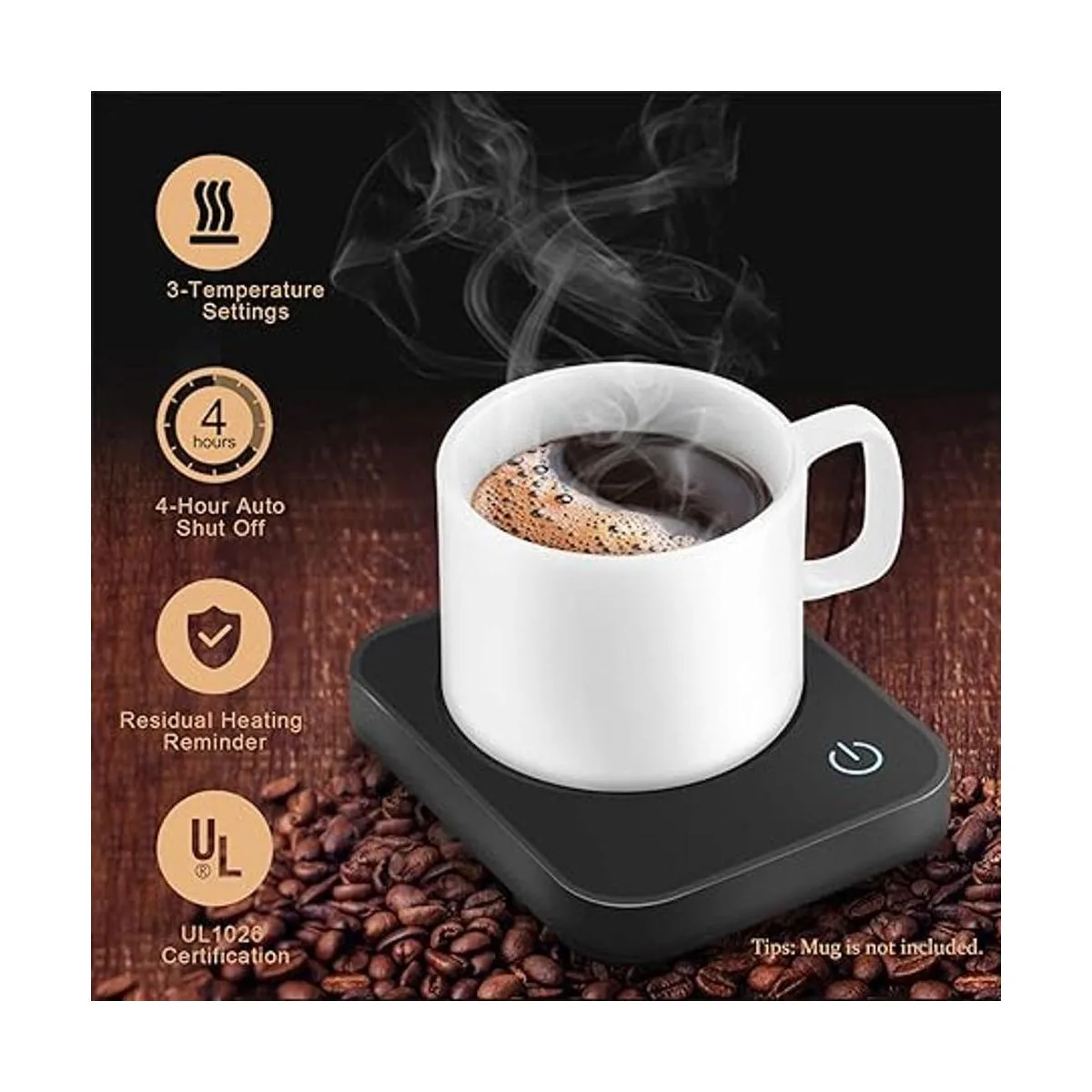 VOBAGA Calentador de taza de café, calentador de café eléctrico para escritorio con apagado automático, 3 ajustes de temperatura para calentar y calentar café, bebidas, leche, té y chocolate caliente sin taza