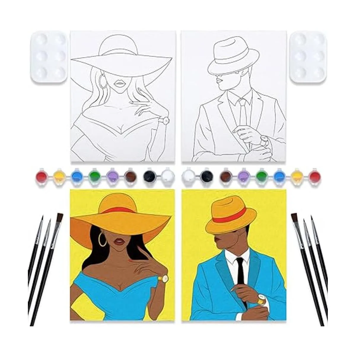 VOCHIC Kits de pintura para parejas, lienzo predibujado para adultos, para pintar y tomar citas, juegos nocturnos para parejas, kit de pintura de 8 x 10 pulgadas, elegantes damas y caballeros paquete de 2