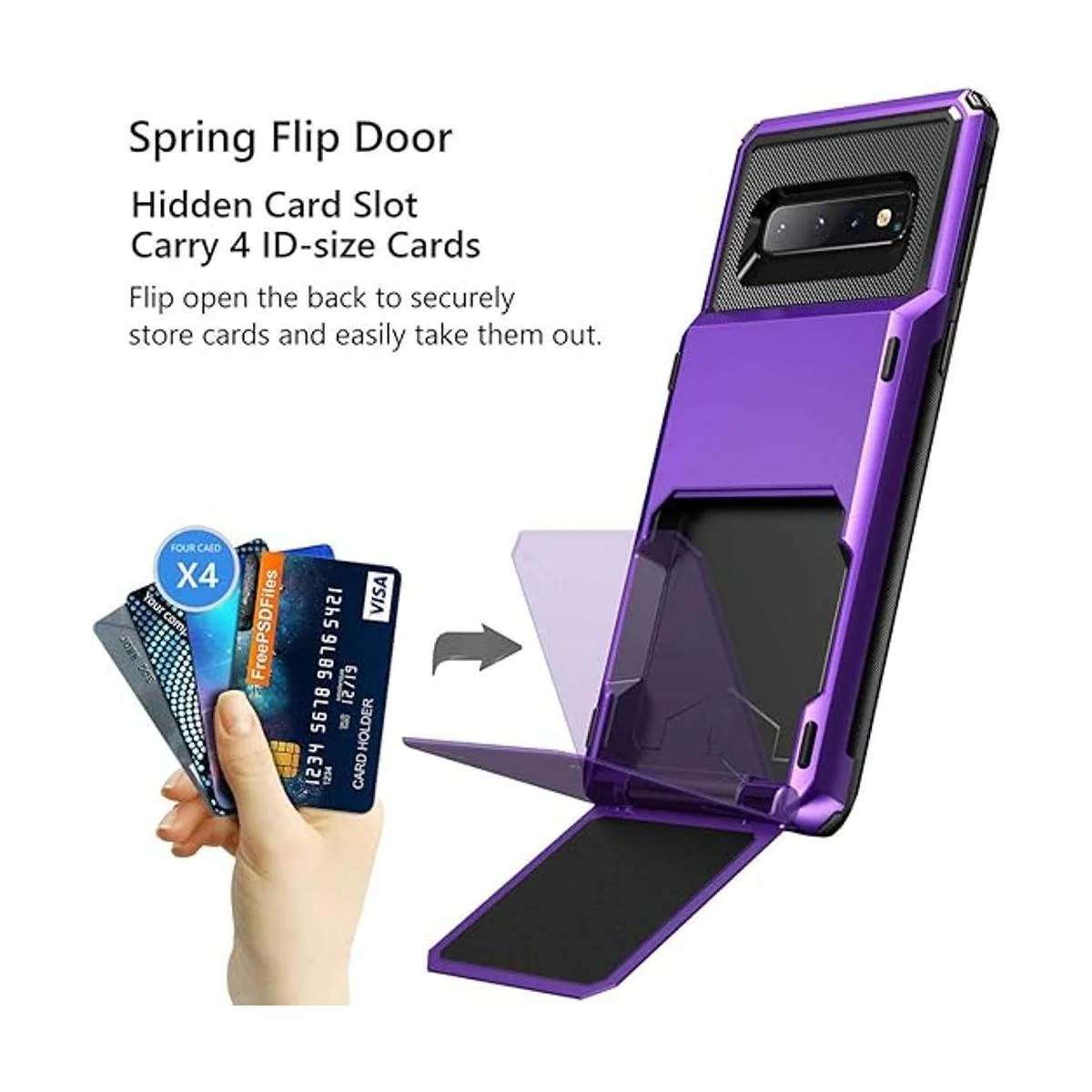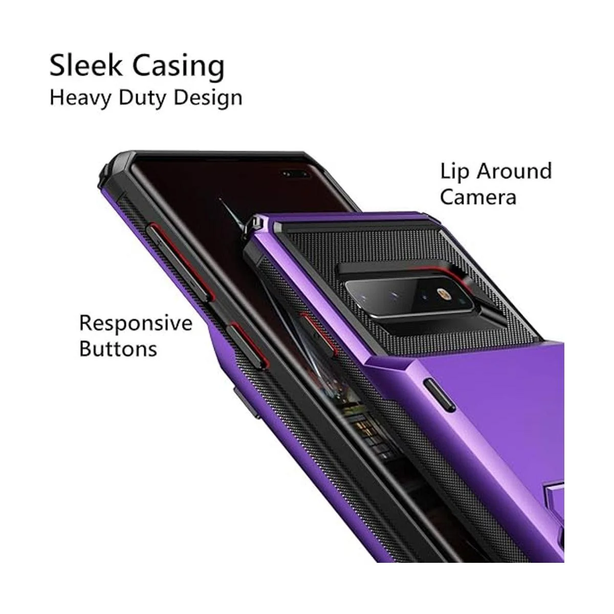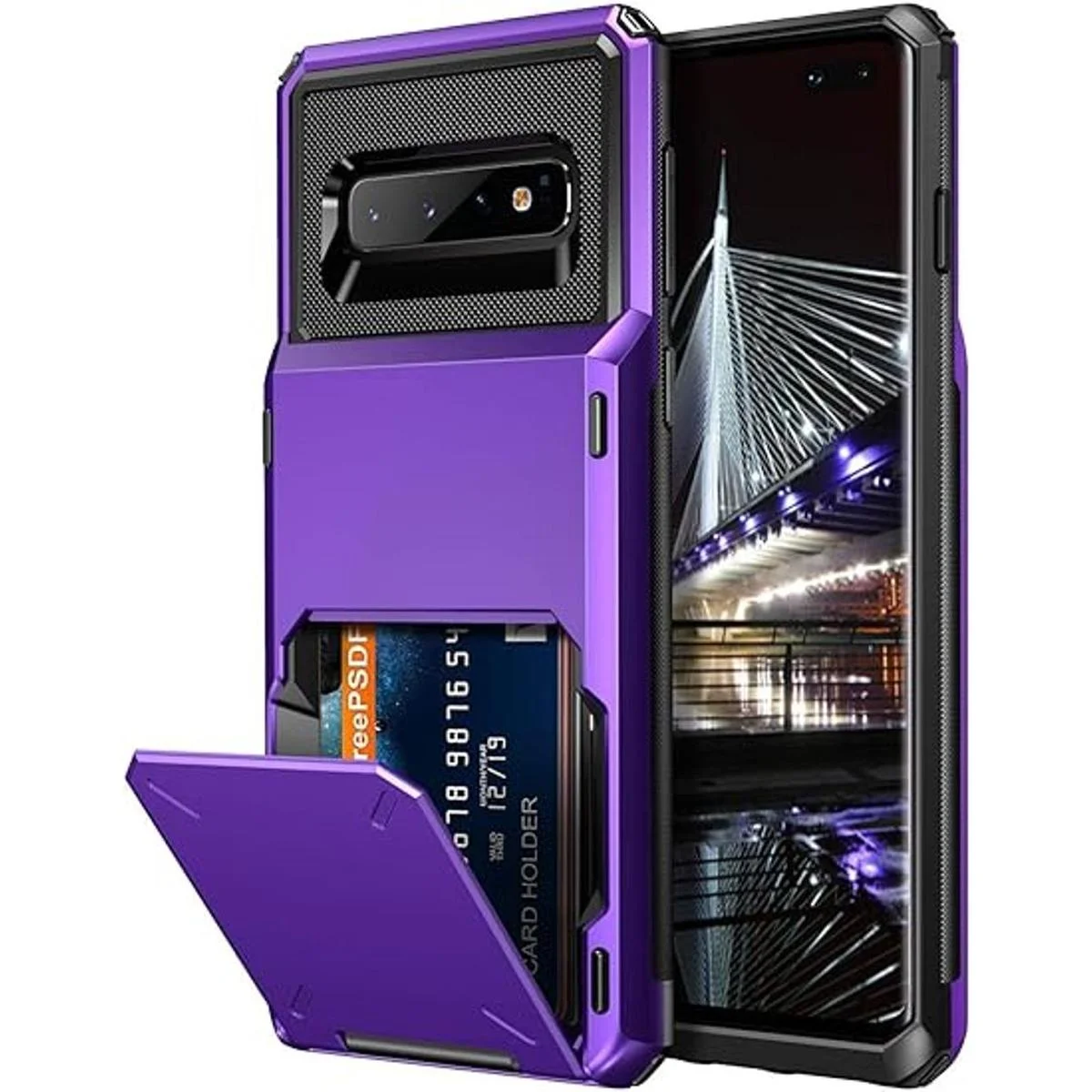 Vofolen Funda para Galaxy S10 Plus 4 bolsillos para tarjetas, ranura para tarjetero, antiarañazos, doble capa protectora, resistente a los golpes, goma resistente, carcasa rígida para Samsung Galaxy S10 Plus morado