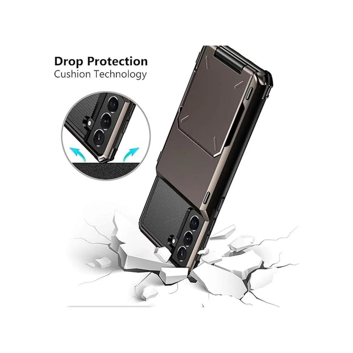 Vofolen Funda para Galaxy S21 de 4 tarjetas, con ranura para tarjeta de crédito, bolsillo trasero, doble capa, protectora híbrida rígida para Samsung S21 6.2 Gun Metal