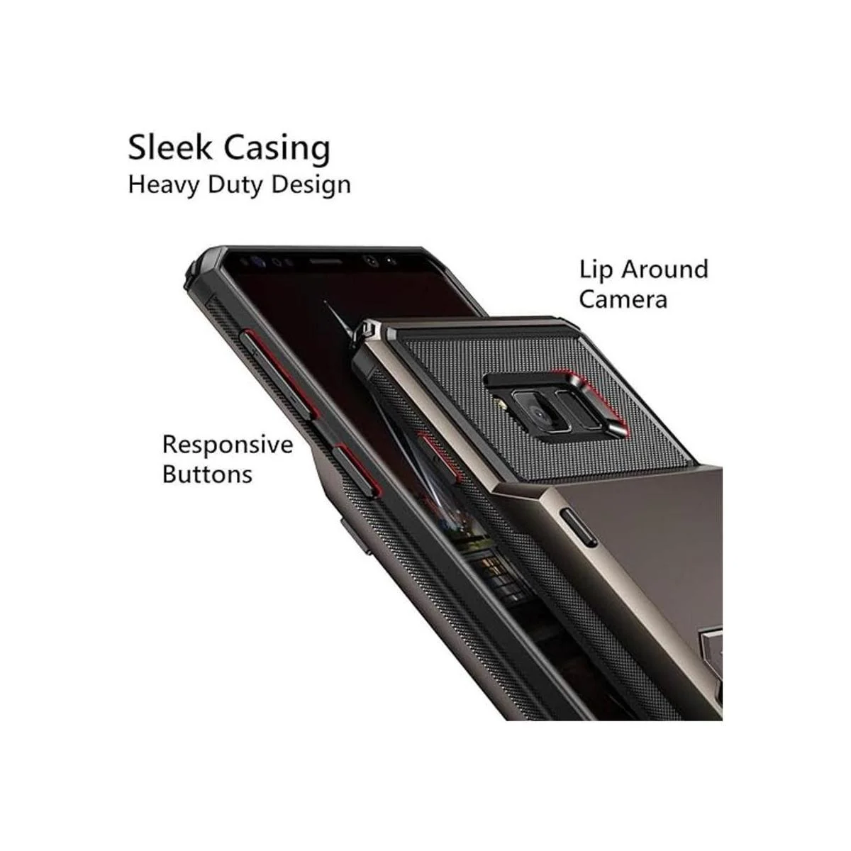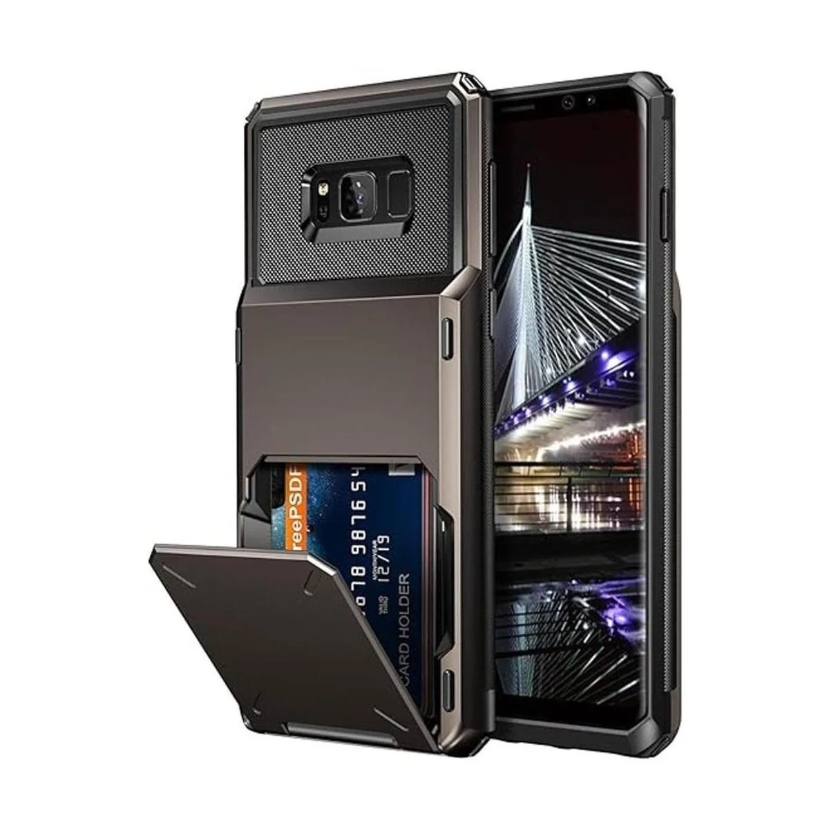 Vofolen Funda para Galaxy S8 Case Wallet con 4 ranuras para tarjetas de crédito de bolsillo, portatarjetas de identificación de puerta Flip Door resistente a los arañazos de doble capa protectora parachoques de goma resistente Armaduras de goma para Samsung Galaxy S8 Gun Metal