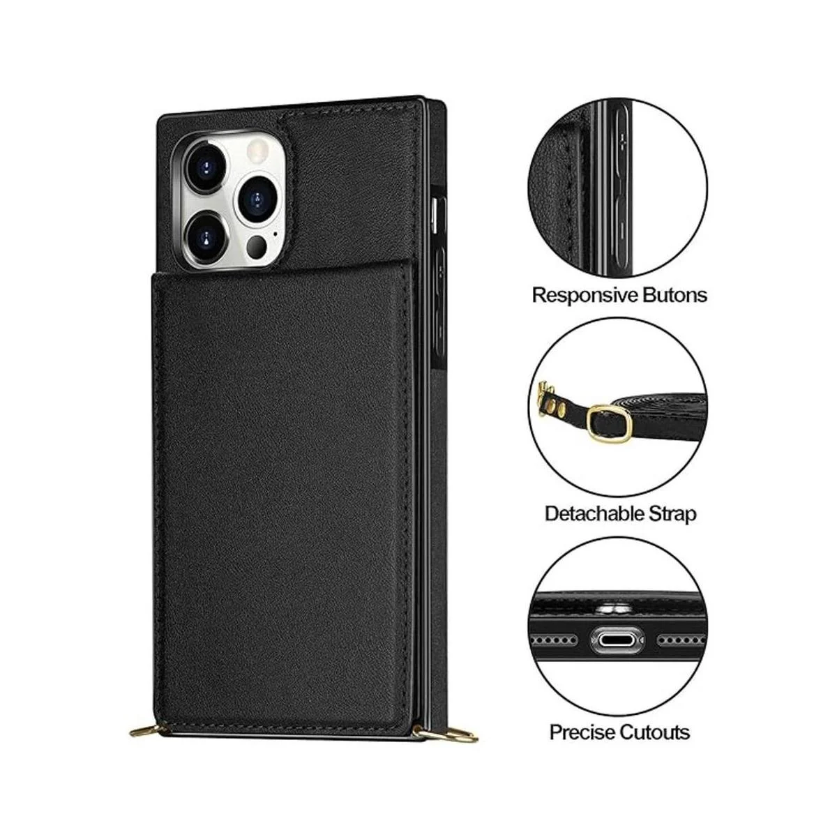 Vofolen Funda para iPhone 11 Pro tipo cartera, tarjetero de piel sintética, con cordón, correa cruzada, cierre magnético, cuadrado, resistente, para iPhone 11 Pro, color negro