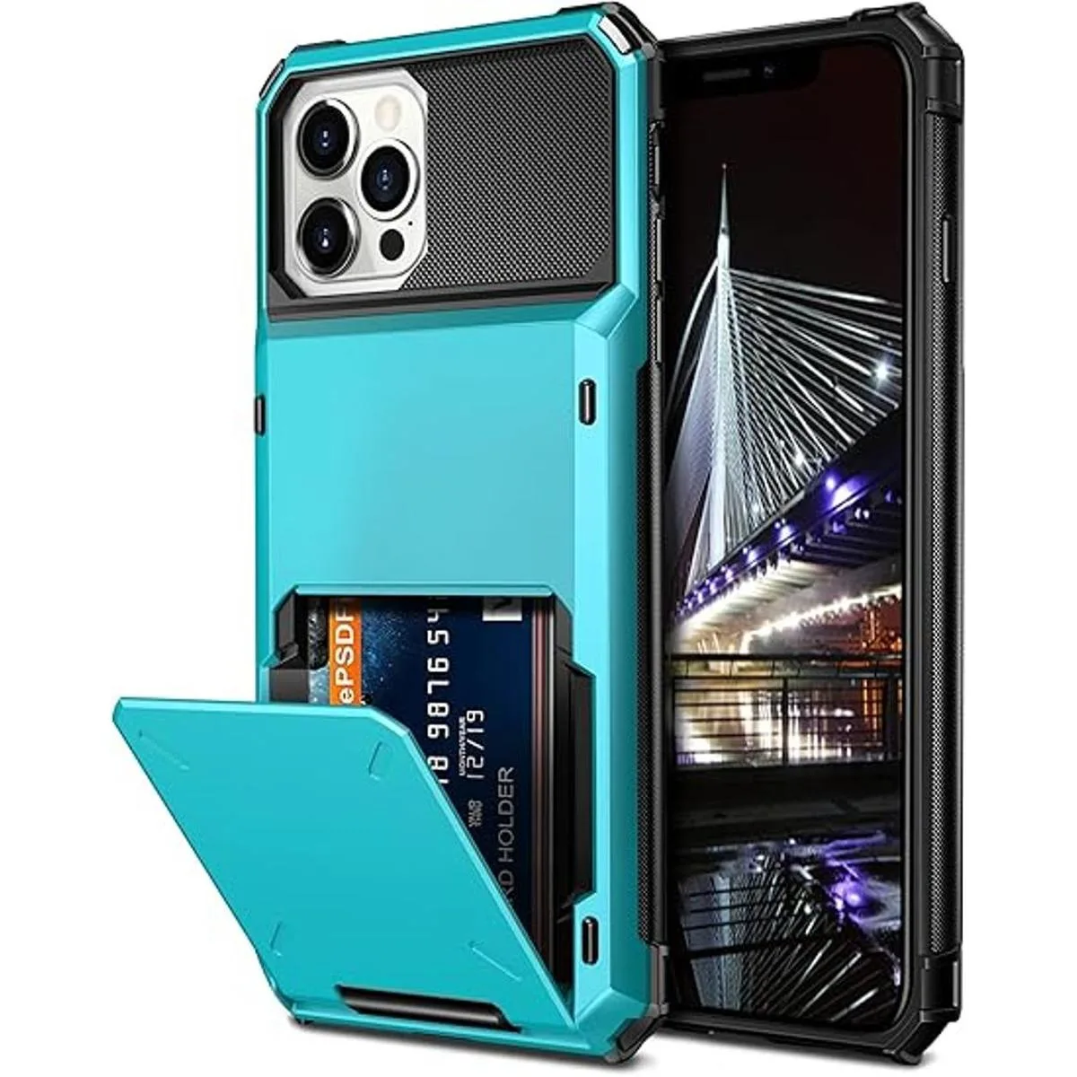 Vofolen Funda para iPhone 13 Pro con 4 tarjetas, ranura para identificación, bolsillo oculto para hombres y mujeres, antiarañazos, doble capa híbrida de poliuretano termoplástico para parachoques de armadura protectora de carcasa dura de 6.1 pulgadas, azul cielo