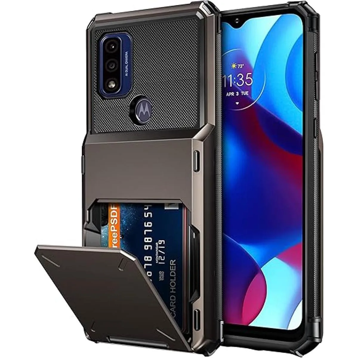 Vofolen Funda para Moto G Pure tipo cartera, funda para 4 tarjetas de crédito, ranura para identificación, resistente a los arañazos, doble capa híbrida protectora rígida de poliuretano termoplástico resistente para Motorola G Pure Gun