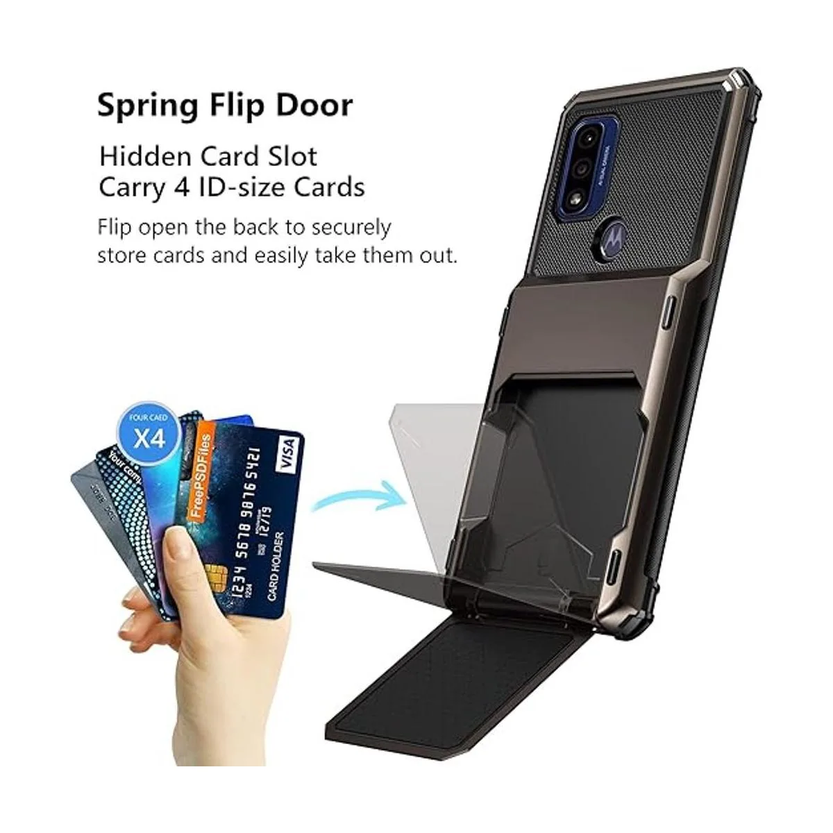 Funda tipo cartera para Motorola Moto G Pure, tarjetero con capacidad para 4 tarjetas esenciales para reemplazar tu cartera