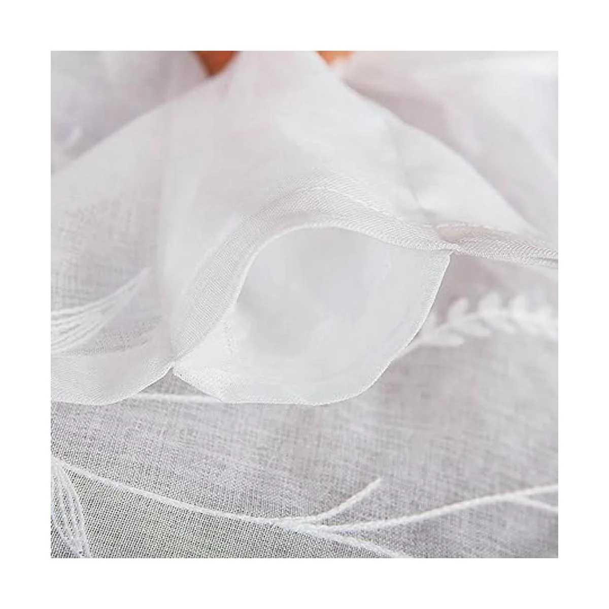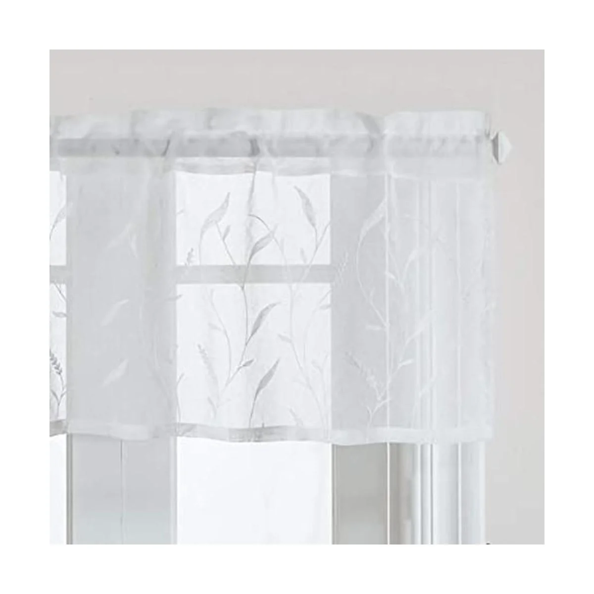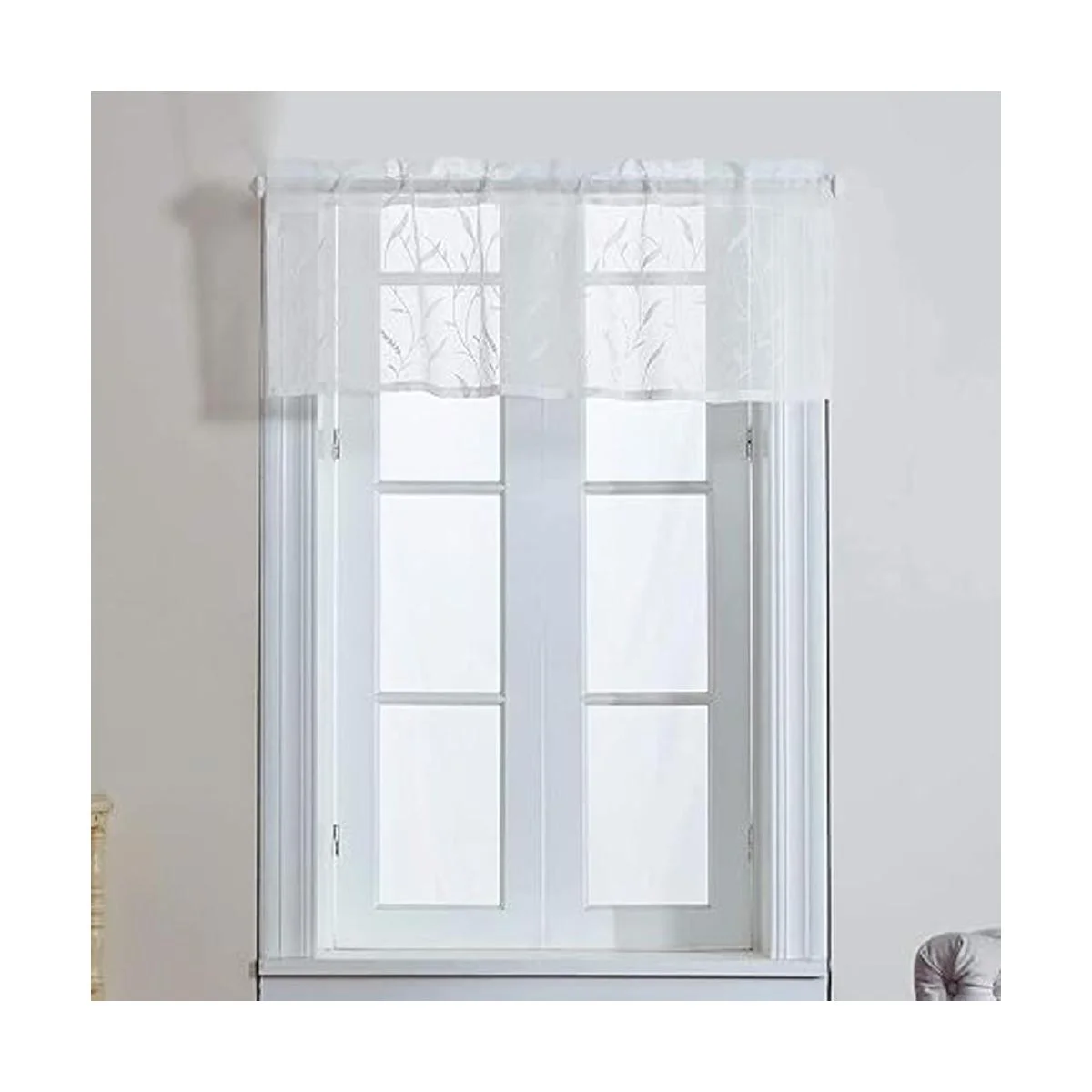 VOGOL Cenefa transparente con bolsillo para barra de color blanco, cenefas de cortinas de cocina para ventanas y cenefas bordadas para dormitorio 52 x 18 pulgadas, 1 panel, borlas