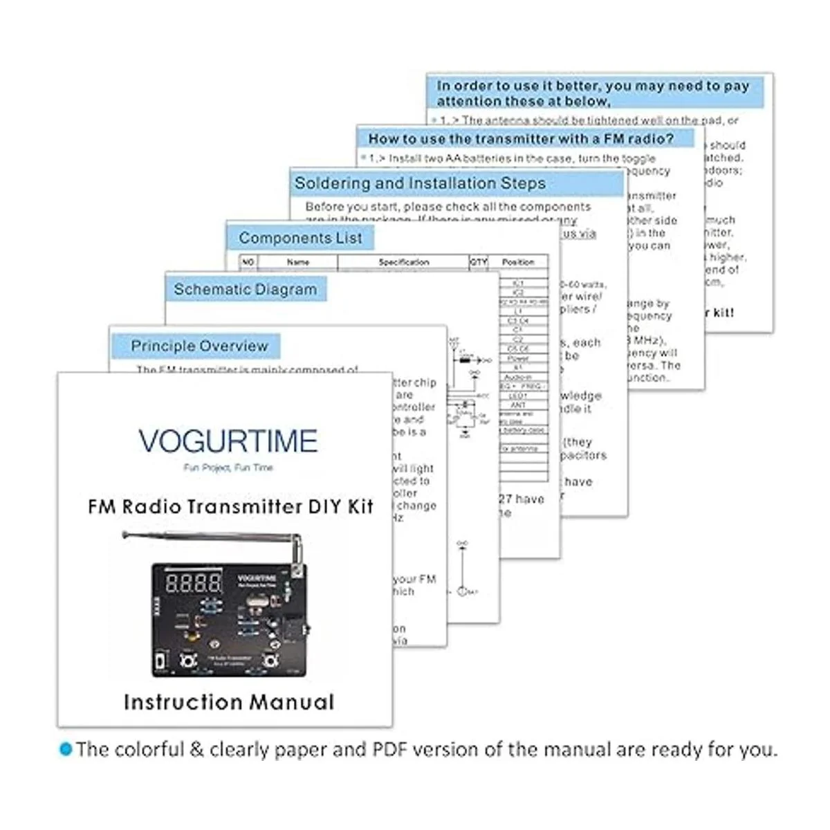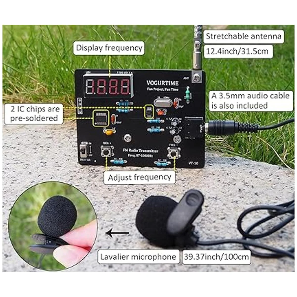 VOGURTIME Kit de proyecto de soldadura de transmisor de radio FM con micrófono Lavalier de audio Kit de soldadura DIY para aprendizaje electrónico, 87108MHz