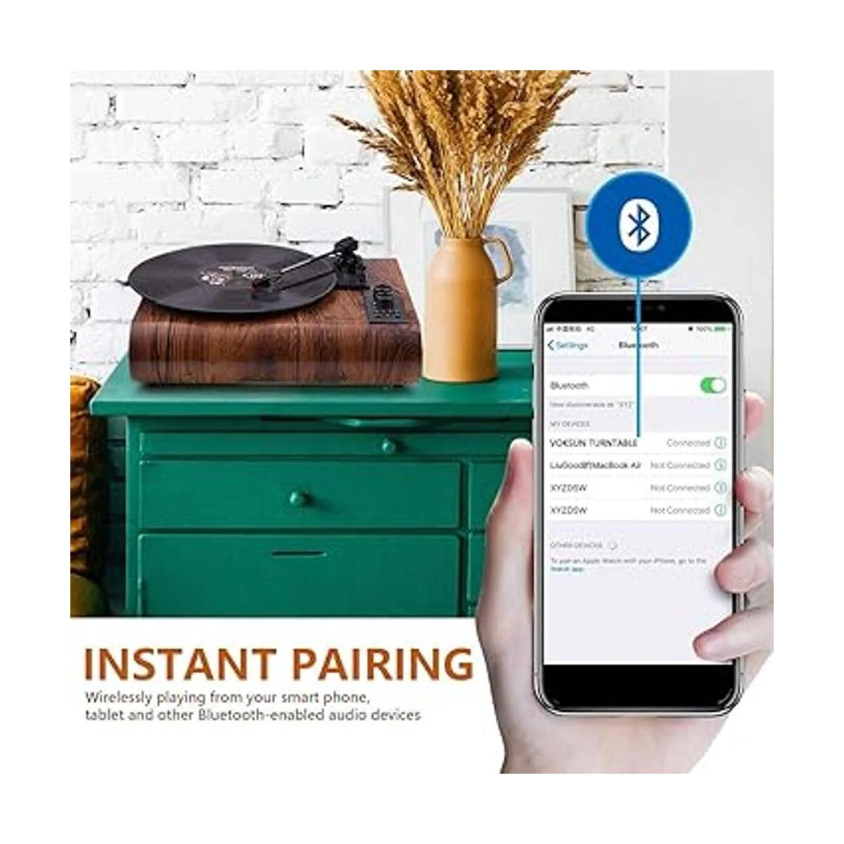 La función de recepción Bluetooth convierte tu reproductor de discos en un altavoz inalámbrico; AM/FM y entrada auxiliar y salida RCA y conector de auriculares para satisfacer tus diversas necesidades de transmisión