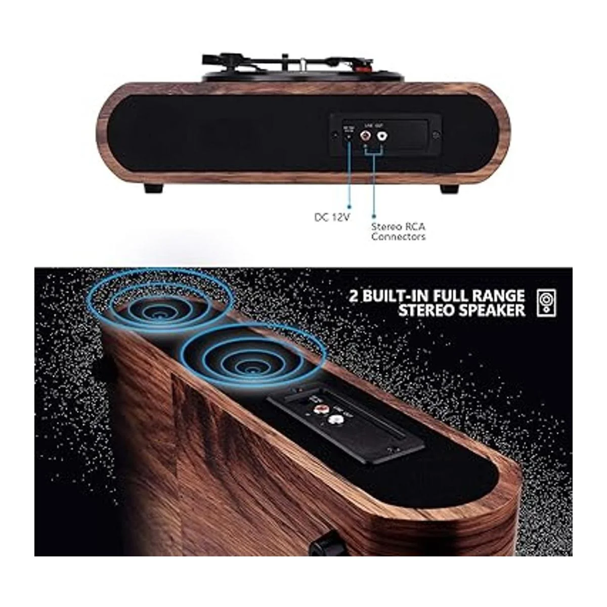La calidad de sonido premium te ayuda a apreciar realmente el sonido cálido y suave de tus vinilos. Altavoces estéreo integrados duales listos para salir de la caja