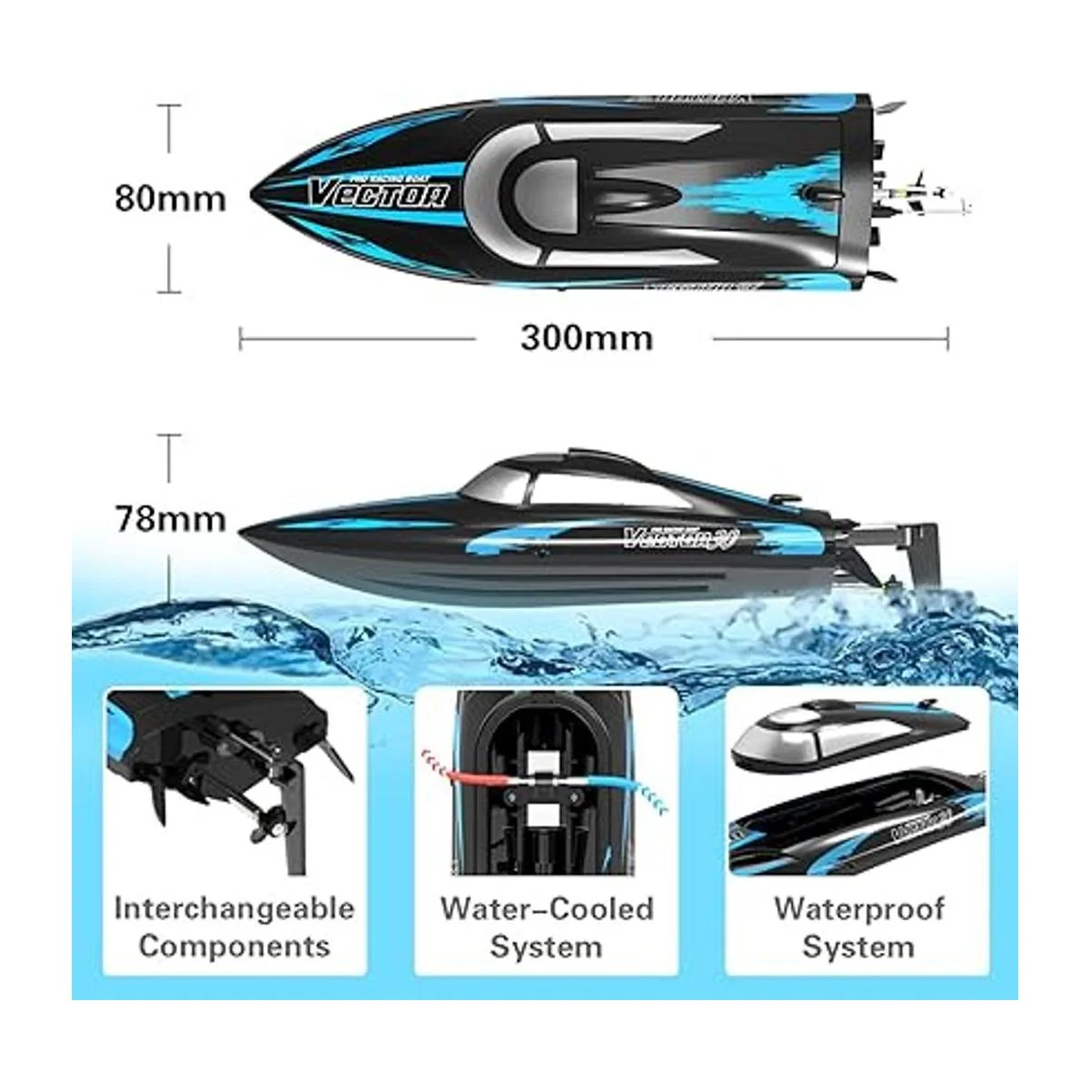 Maravillosos regalos para niños y niñas: el barco Vector XS de alta velocidad RC es fácil y divertido para niños y adultos, y es uno de los barcos de control remoto de agua dulce más duros y rápidos para niños a partir de 14 años. No apto para uso en agua salada.