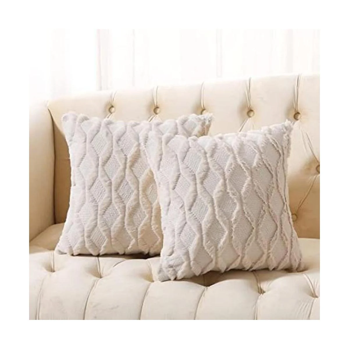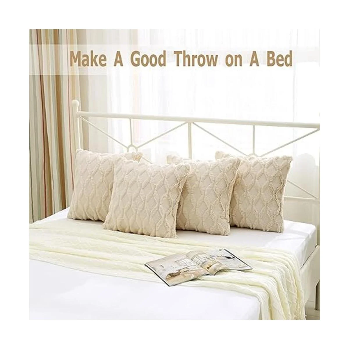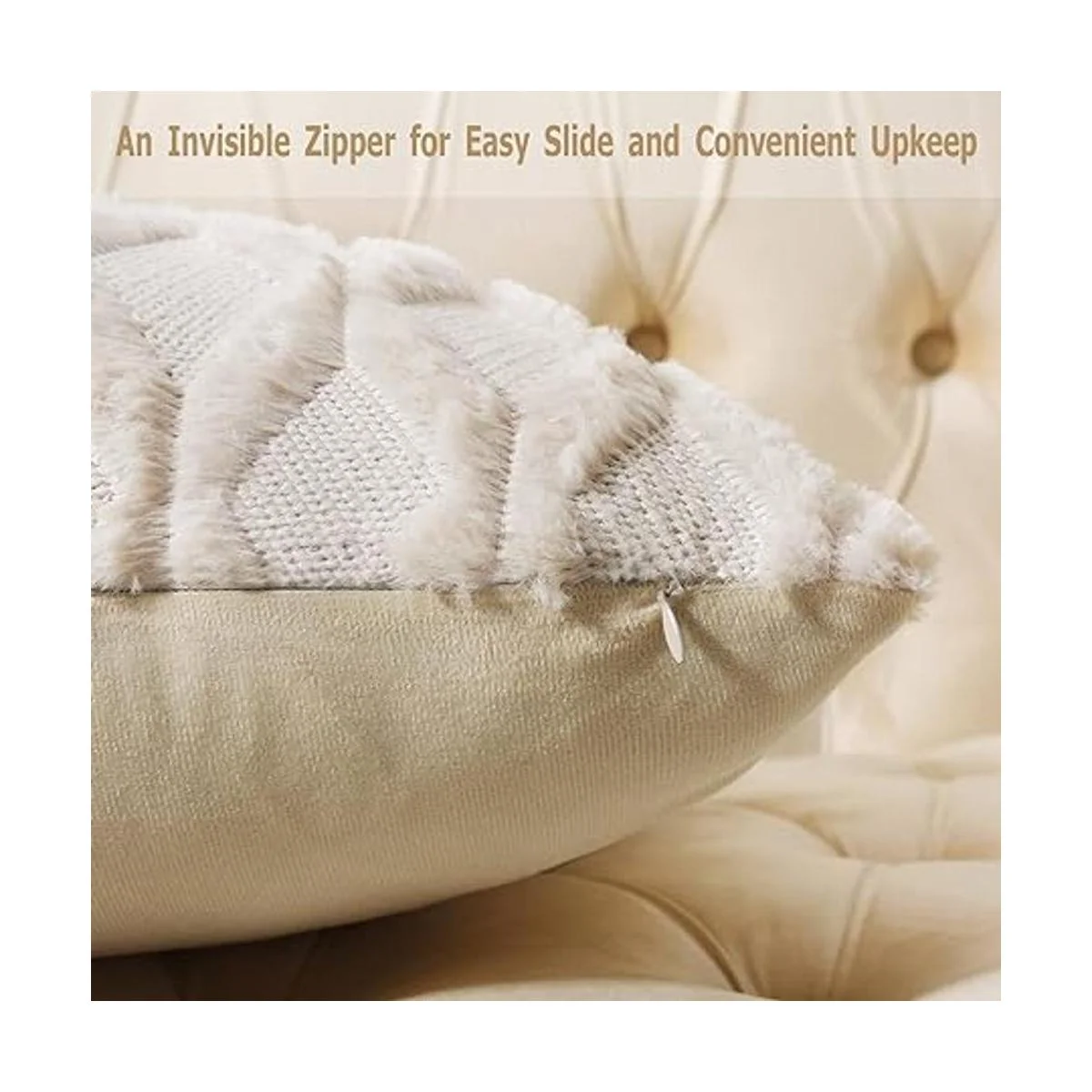 Volcanics Paquete de 2 fundas decorativas para cojín cuadrado de 24 x 24 pulgadas, de lana sintética y terciopelo, super suave, estilo rural y bohemio, para sofá, color beige