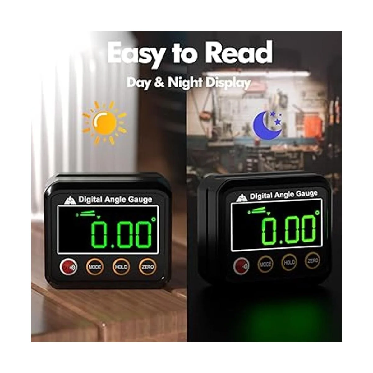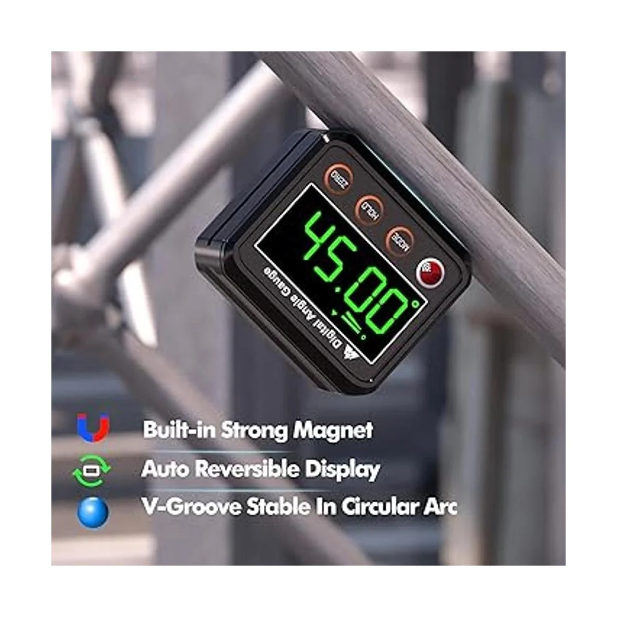 VOLCANOES CLUB Inclinómetro magnético de ángulo digital Mini medidor de ángulo de nivel digital Herramienta de medición rápida y estable Pantalla retroiluminada y gran número carpintería, construcción