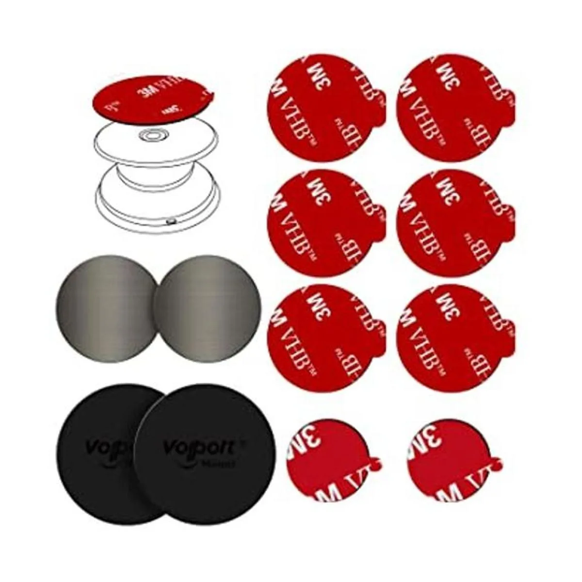 Diseño para soporte y agarre intercambiables para teléfonos: las múltiples cintas circulares de doble cara 3M de la marca VOLPORT están diseñadas para reparar el soporte expandible del anillo de agarre del teléfono y reemplazar los soportes magnéticos para el coche. Adhesivos adhesivos circulares de dos lados resistentes que se adaptan a la base de soporte plegable de tamaño regular y a la parte posterior del salpicadero reemplazable; las placas de metal se pueden colocar dentro de las tapas o fuera de la parte superior de las tapas. Cubierta de placa metálica con respaldo adhesivo para la parte posterior del teléfono/parte superior del agarre.
