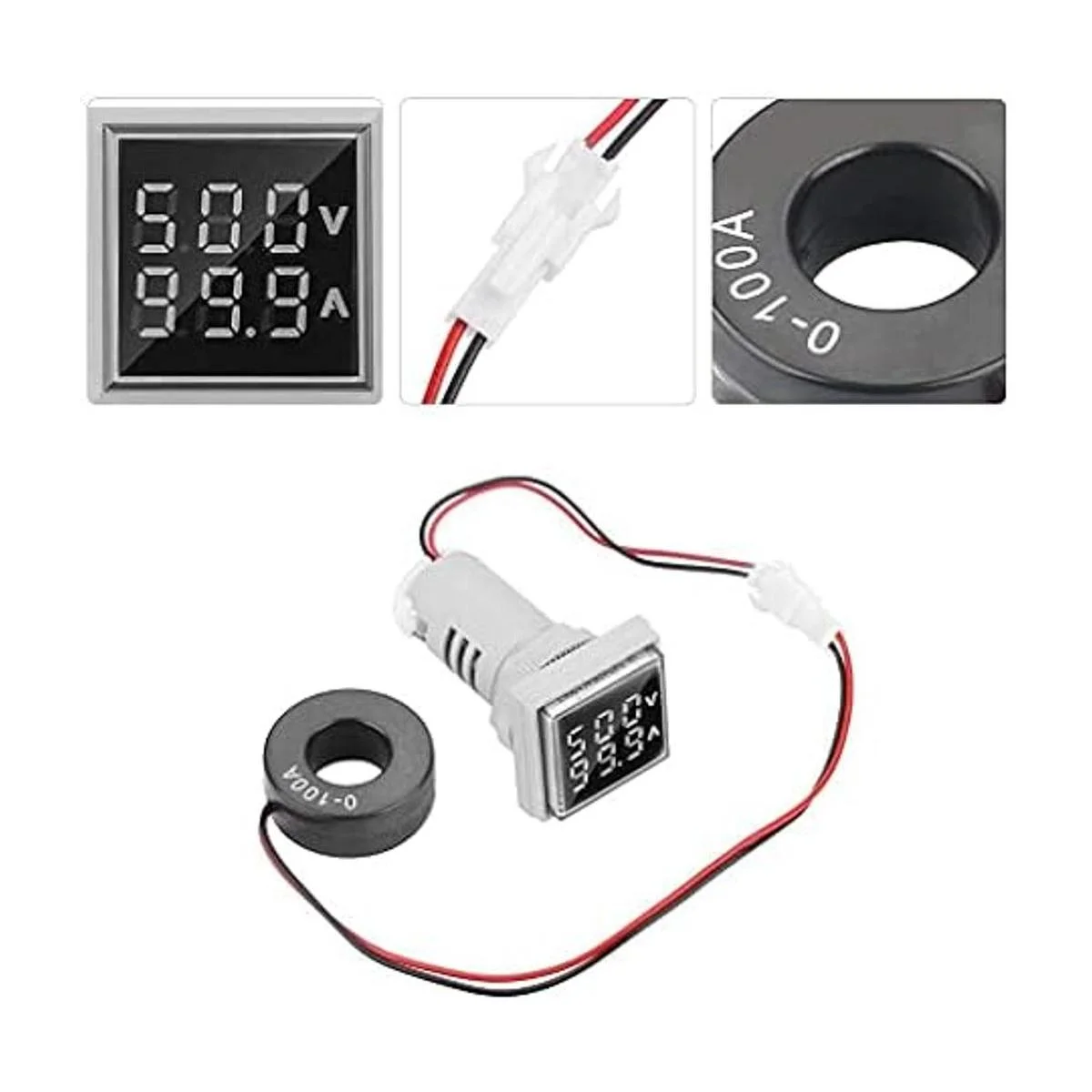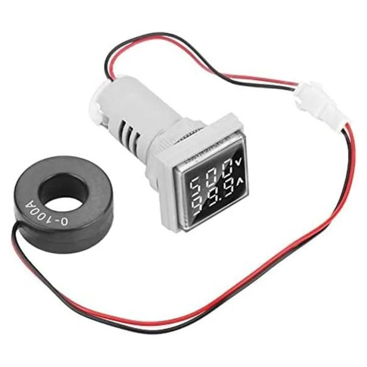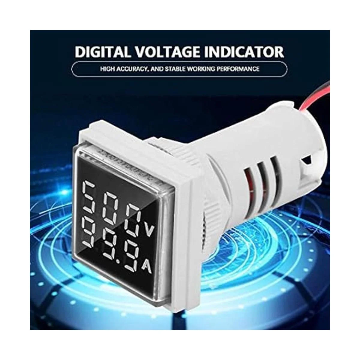 Voltímetro de pantalla LED, probador de voltaje, detector de corriente, cuadrado de 0.866 in, panel de pantalla doble, voltímetro AC 0100A 60500V indicador de metro blanco