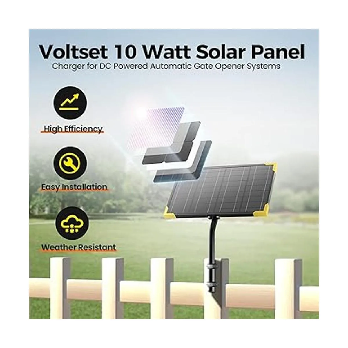 Voltset 10 Watt Solar Panel Kit Powered Charger, 12V Waterproof Solar Battery Trickle Charger Maintainer with Tubular Bracket Installation Tool for Automatic Gate Opener, Electrical Fence