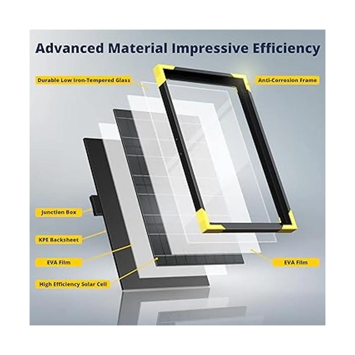 Highefficient Solar Panel Kit Advanced 10W high efficiency solar panel charger with conversion rate up to 24, sourcing high strength and high light transmission tempered glass to allow better absorption of sunlight and faster charging efficiency. The aviationgrade aluminum alloy outer frame makes the solar panel more solid and durable.