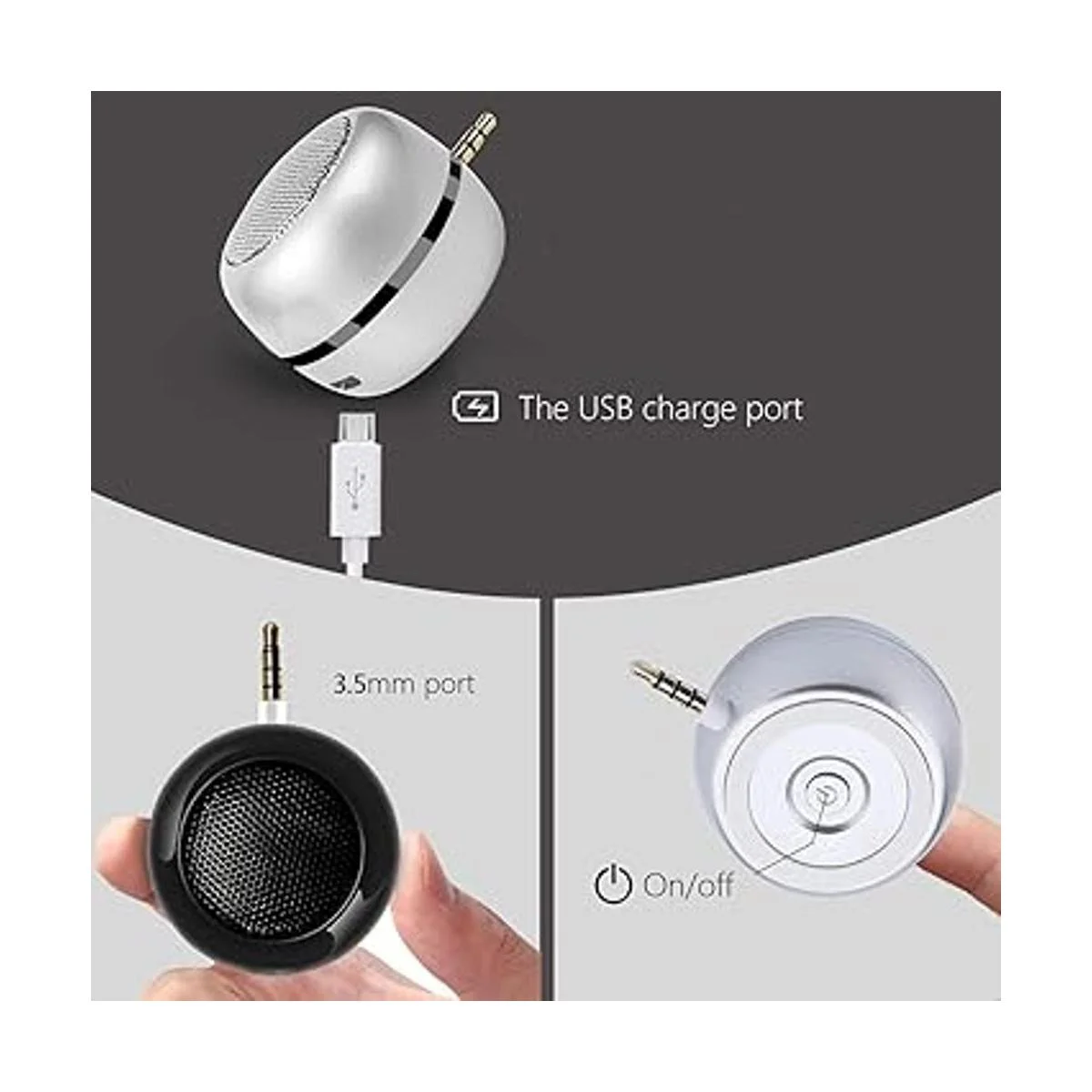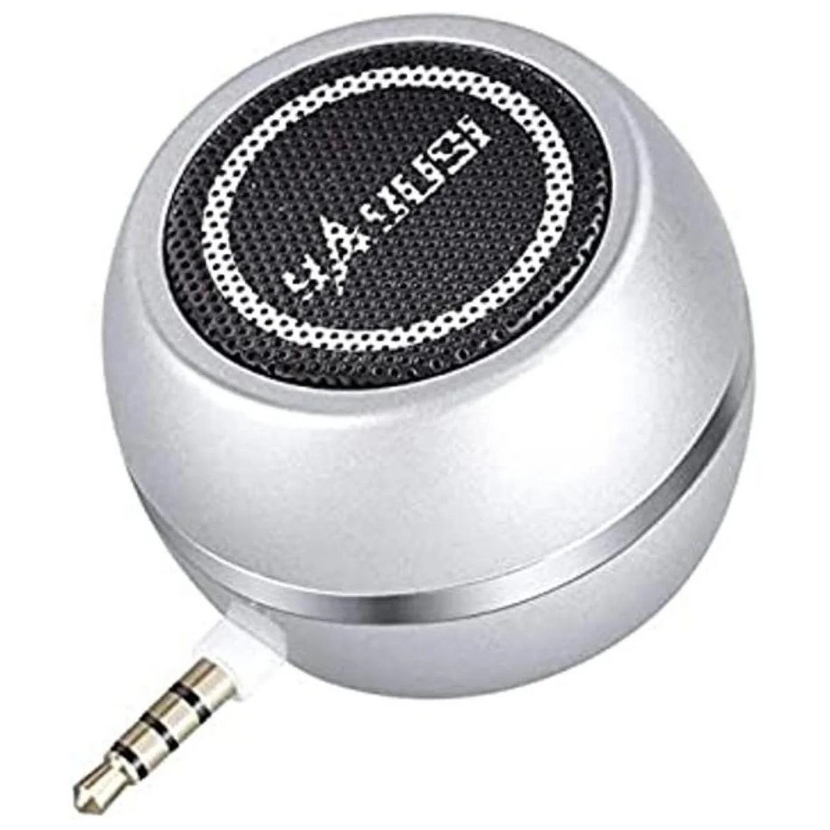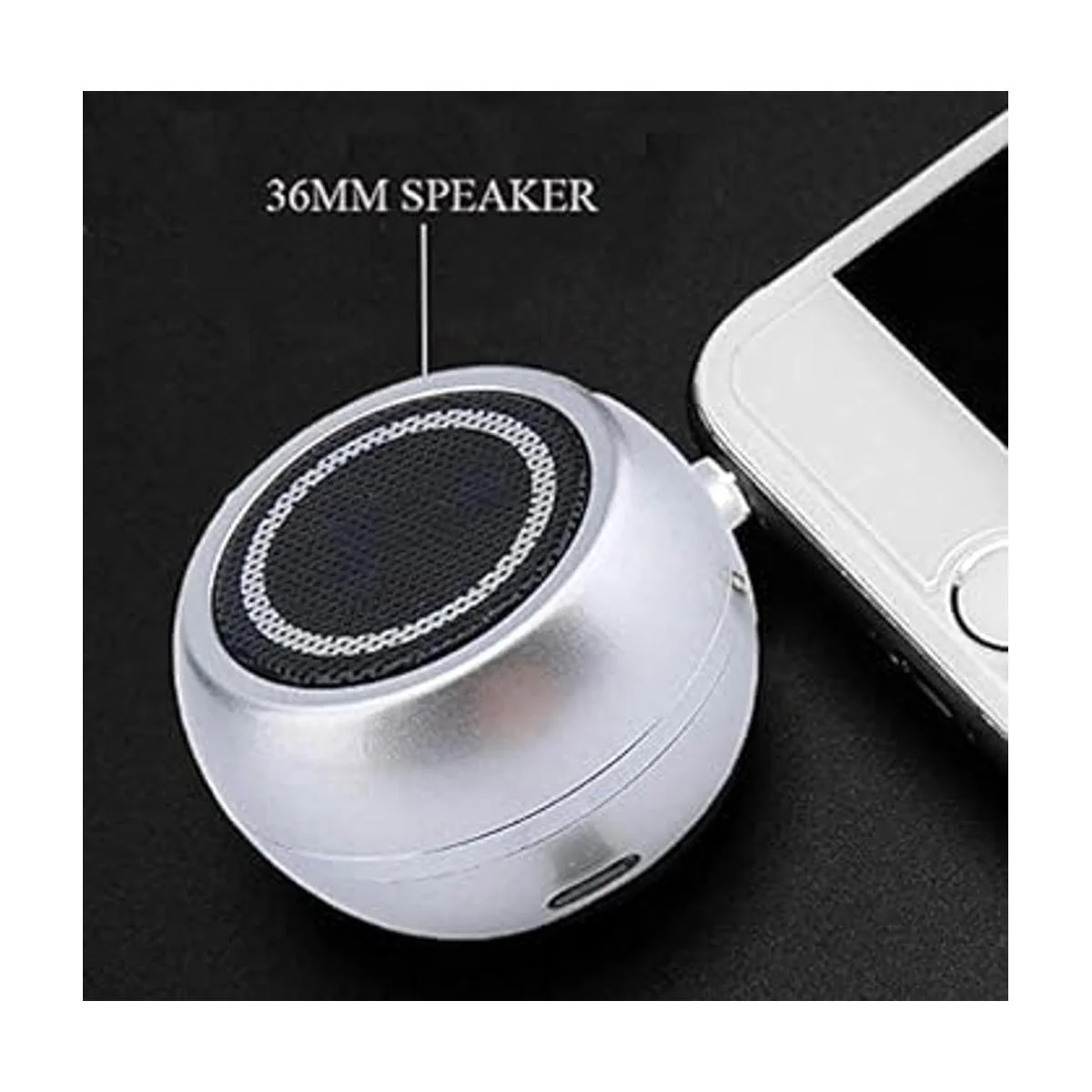 VOMAUXIN Mini altavoz inalámbrico con conector de entrada auxiliar de 0.138 in, altavoz portátil de 3 W para iPhone, iPod, iPad, teléfono celular, tablet, portátil, con batería recargable USB, opción de regalo para niños, color plateado