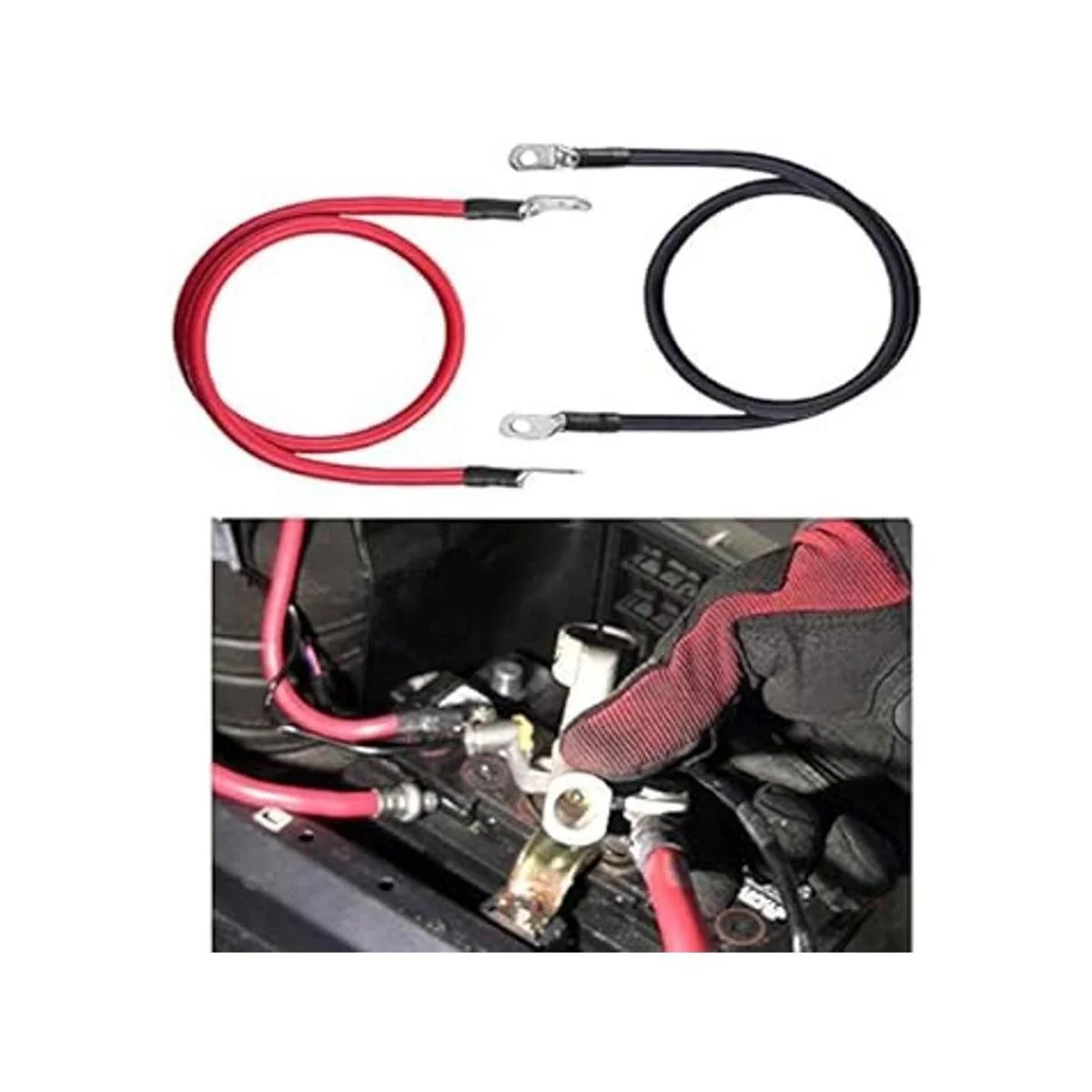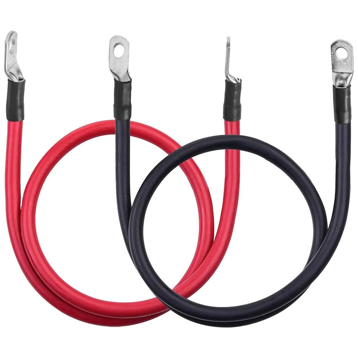 Cable de batería de calibre 4 AWG: incluye un cable positivo rojo y un negativo negro, longitud de 2 pies para cada cable, ajuste de perno de 3/8 pulgadas. Negro Rojo 2 piezas Set