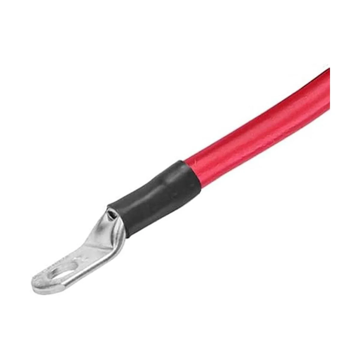 Los cables de batería de cobre están disponibles con lengetas de cable preconectadas con agujeros de montaje de 3/8 pulgadas de diámetro. La chaqueta y el aislamiento son resistentes al aceite, gas, agua salada, ácido de batería, calor, abrasión y luz solar.