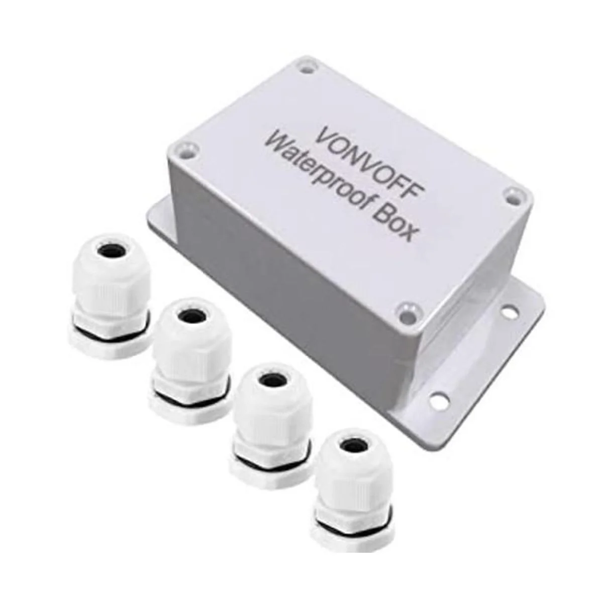 VONVOFF Caja eléctrica, caja de conexiones universal, caja de plástico ABS IP65 impermeable a prueba de polvo, caja con agujero fijo y 4 piezas de prensaestopas M16, 3.94 x 2.68 x 1.97 pulgadas 3.937 x 2.677 x 1.969 in blanco