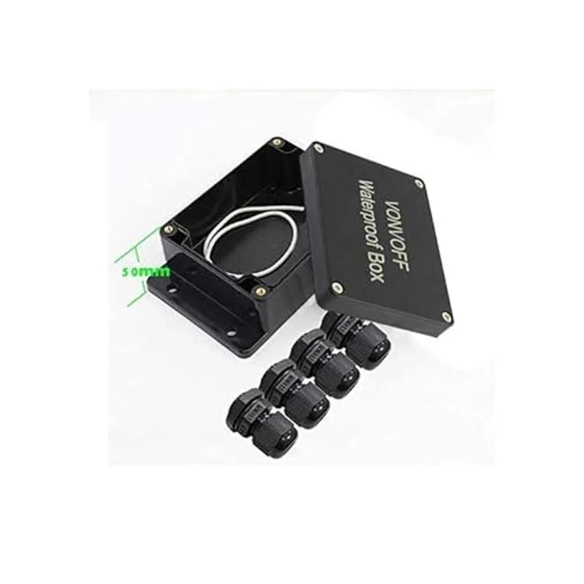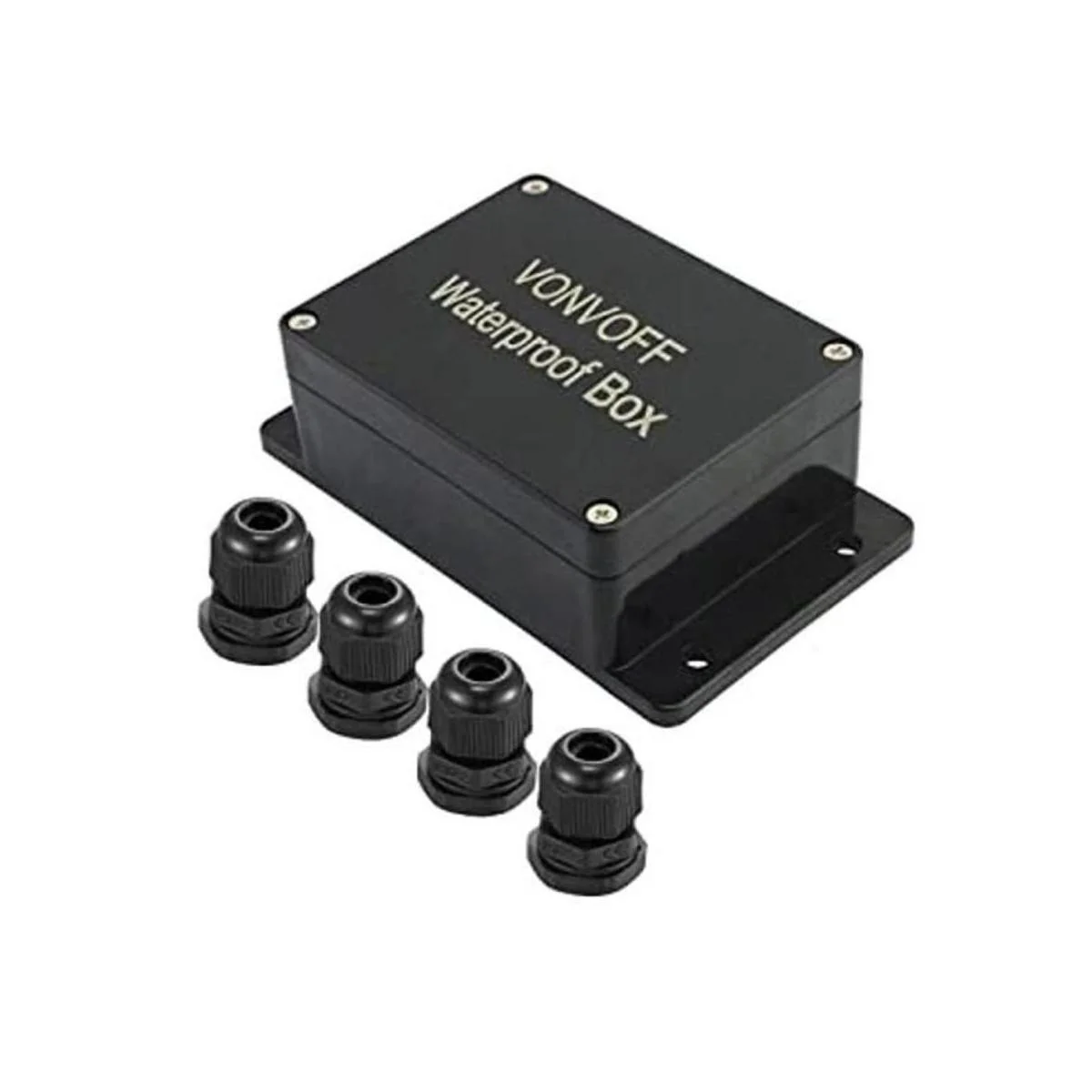 VONVOFF Caja eléctrica de bricolaje, caja de conexiones universal, caja de plástico ABS IP65 a prueba de polvo, caja con agujero fijo y 4 prensaestopas M16, 3.94 x 2.68 x 1.97 pulgadas 3.937 x 2.677 x 1.969 in negro