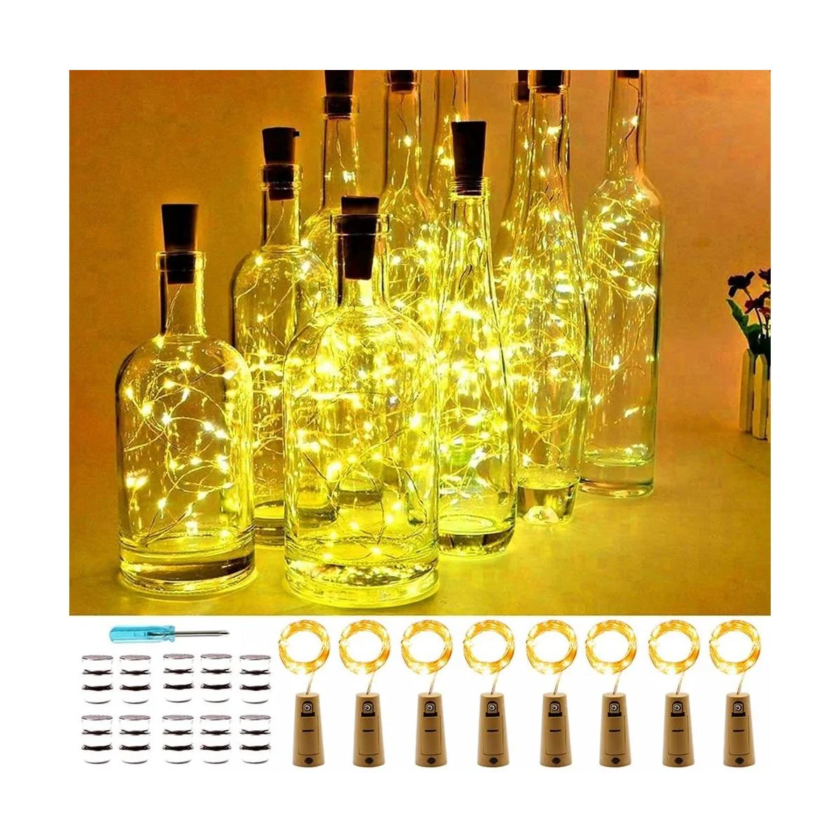 Alta calidad: con micro LED ultrabrillante cable resistente que es de baja emisión de calor y resistente al agua no el cuerpo de corcho, funciona estable por voltaje de seguridad rentable y eficiente energéticamente.
