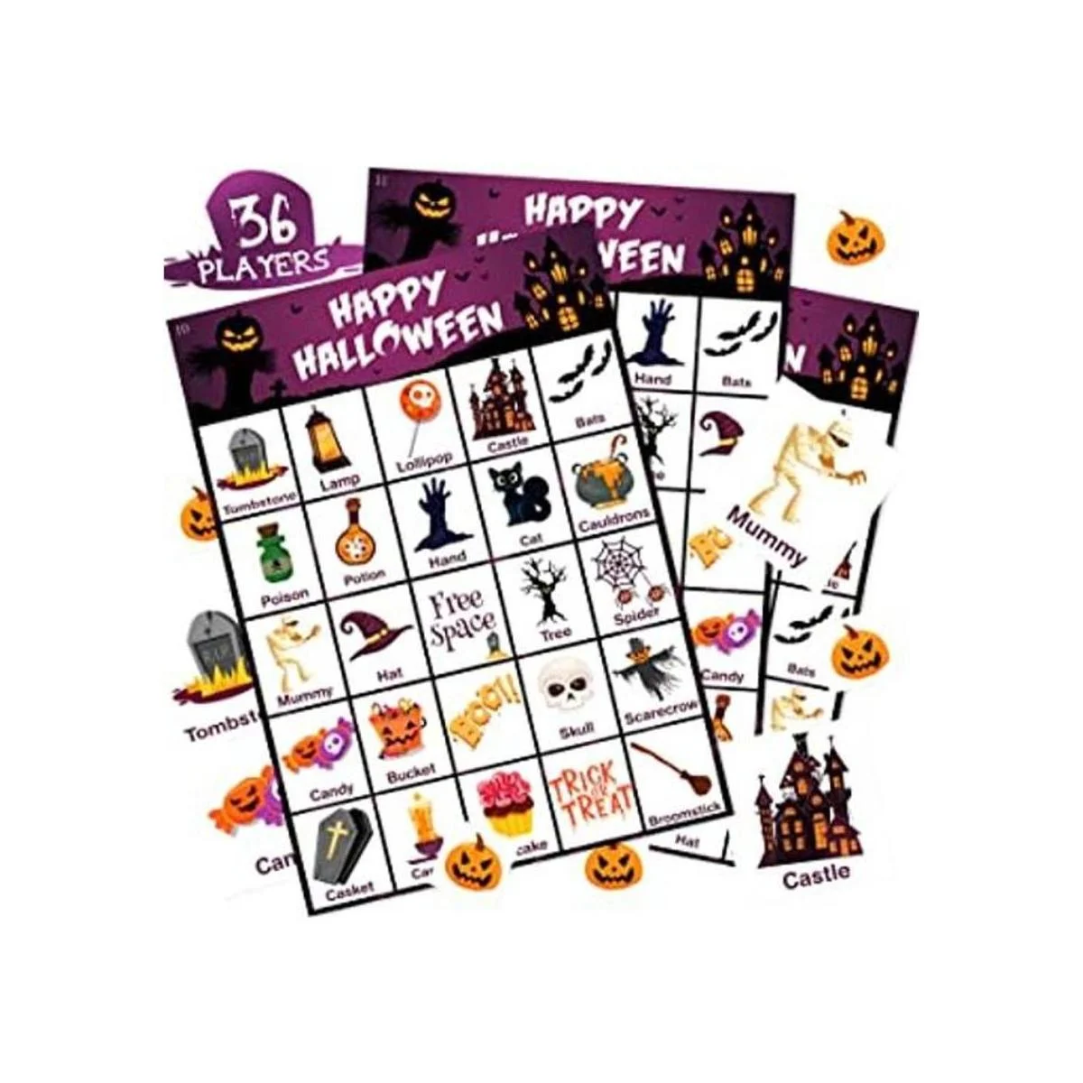 VOpitos Tarjeta de juego de bingo de Halloween para niñosadultos, 36 jugadores, juego de Halloween para familiaescuela, aula, grupo grande, recuerdo de fiesta de Halloween para niños y niñas