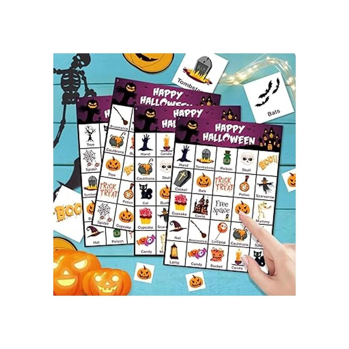 Perfecto para juegos de fiesta de Halloween: el juego de bingo es adecuado para todas las edades. Es un juego esencial para actividades de fiesta familiar de Halloween y juegos de aula escolar. Añadirán mucha diversión a Halloween.