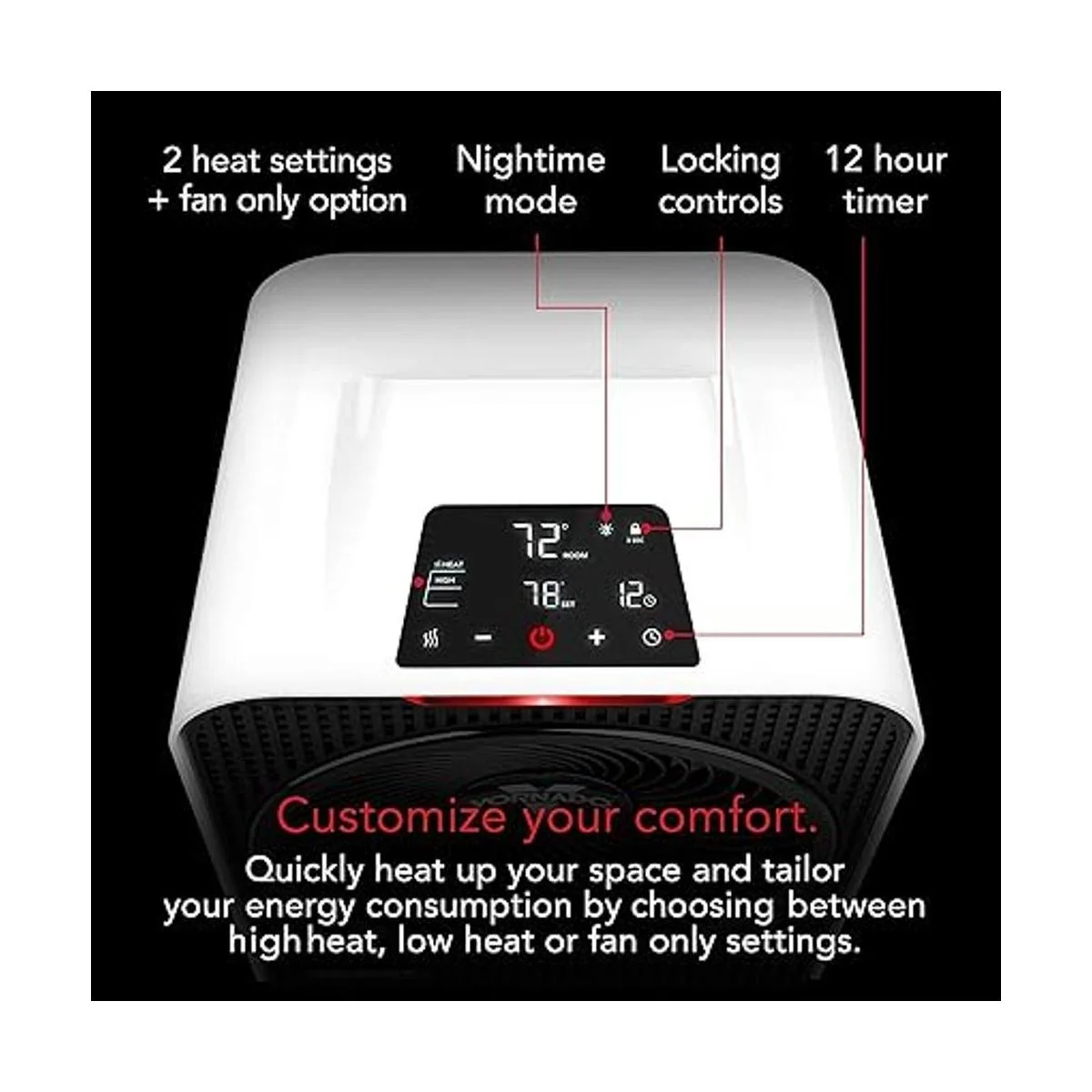 Calor eficientemente: utiliza los controles táctiles LED para seleccionar 2 ajustes de calor silenciosos baja/750 W, alto/1500 W, una opción solo para ventilador, temporizador de ahorro de energía de 1 a 12 horas y modo de hora de dormir.