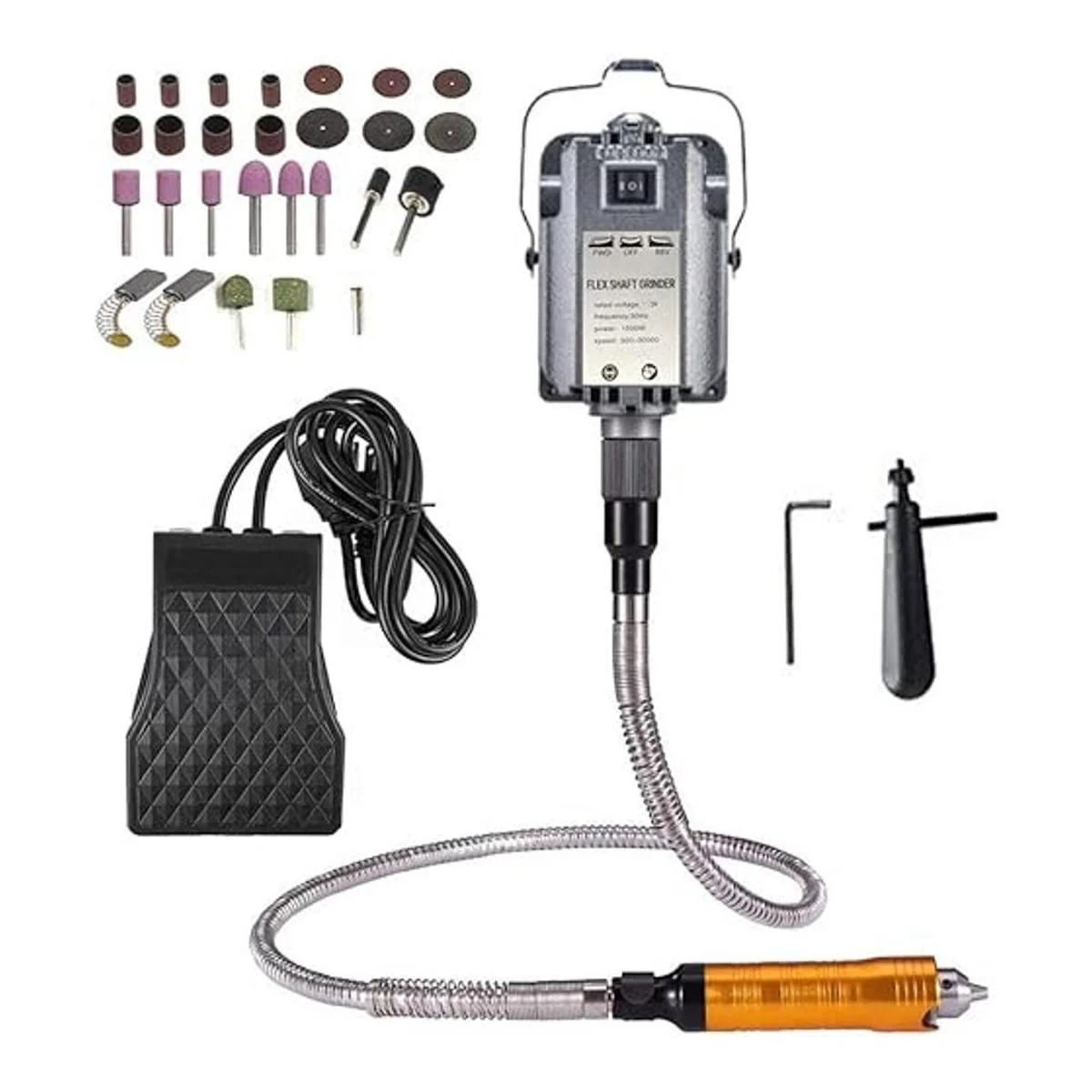 VOTOER 1000 W herramienta rotativa eje flexible eléctrico colgante amoladora talladora, rotación hacia adelante y hacia atrás, kit de reparación de joyería de trabajo de metal multifunción, control de pedal de pie, eje flexible de metal, 30000 RPM