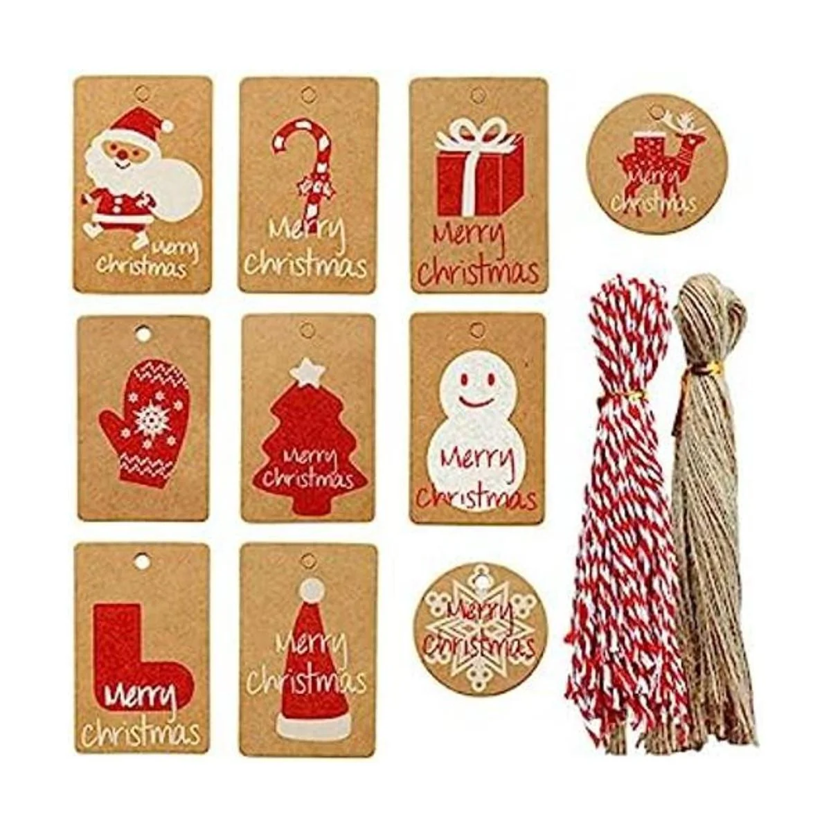 VstarOne 100 etiquetas de regalo de papel kraft para regalo, etiquetas de papel de Navidad con cinta para escribir, 10 diseños para manualidades, regalos de Navidad, paquete de regalo, etiquetas colgantes de dulces