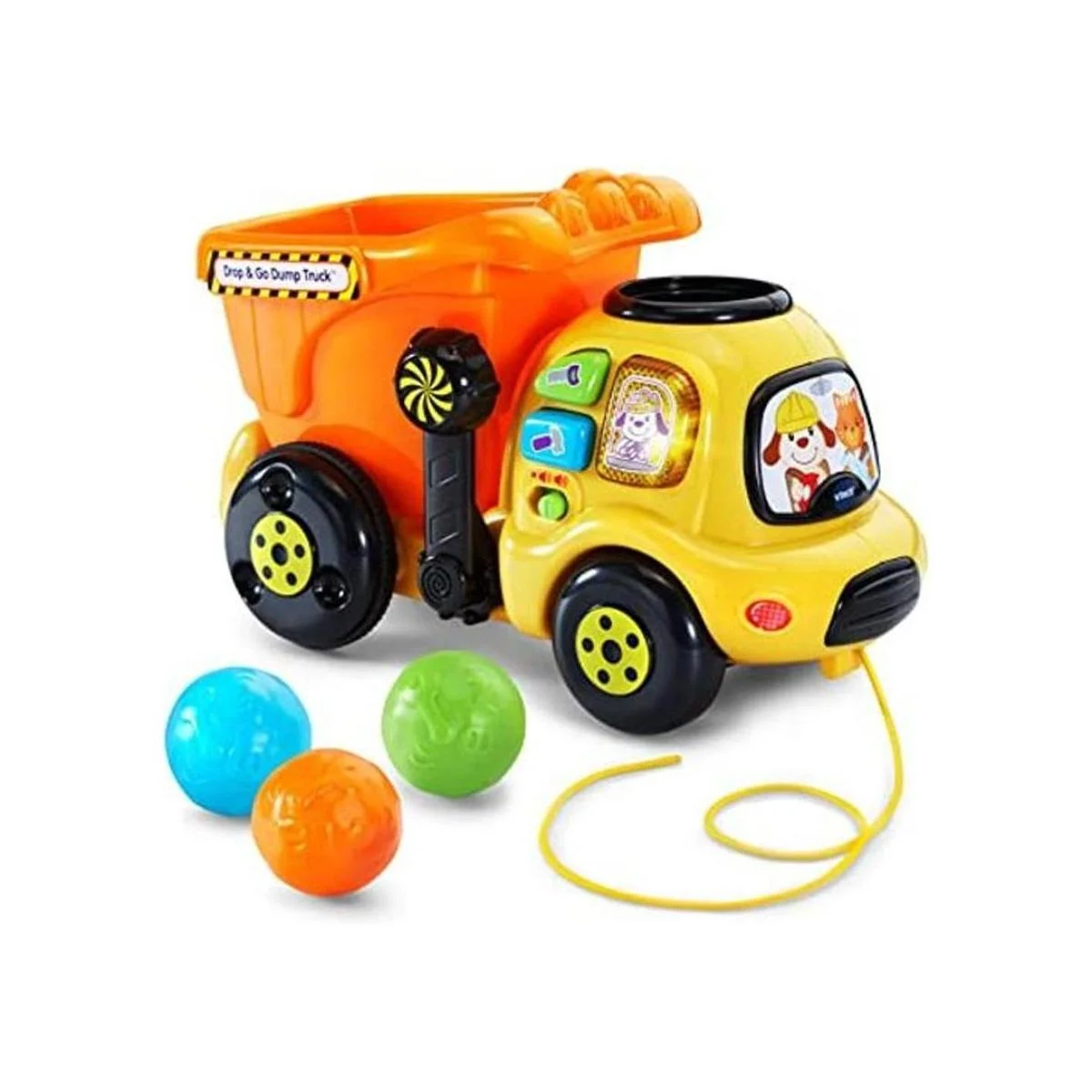 Deja caer una roca colorida en la parte superior de este alegre juguete de camión volquete y mira cómo se cae en el cubo para aprender números