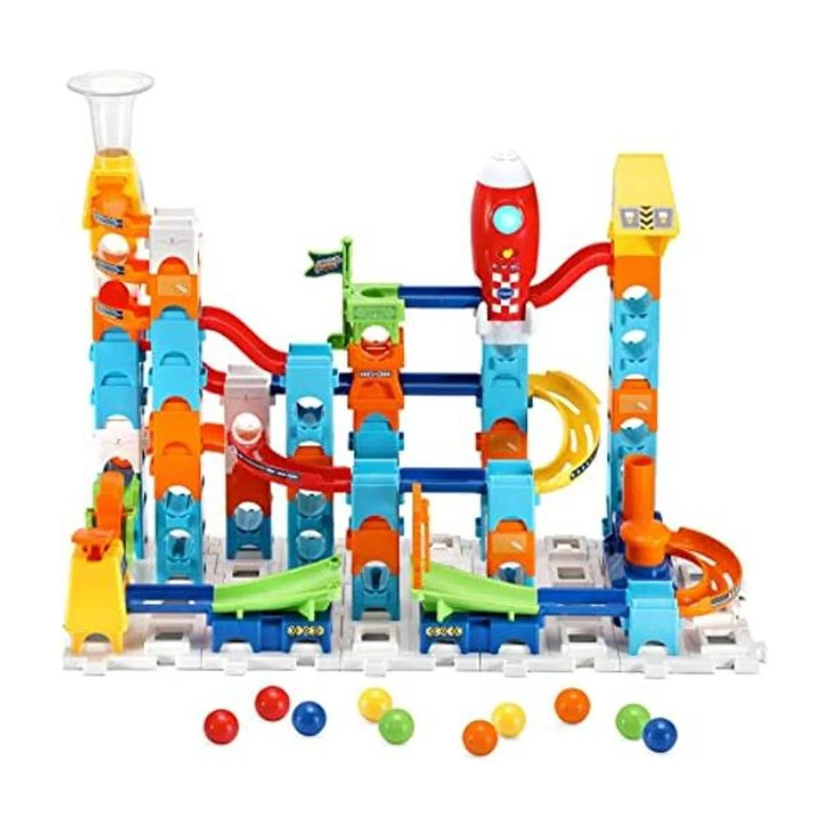 Los bloques codificados por colores y una guía fácil de seguir te ayudan a construir tres construcciones diferentes, desde principiantes hasta avanzados o crear la tuya; incluye 10 canicas