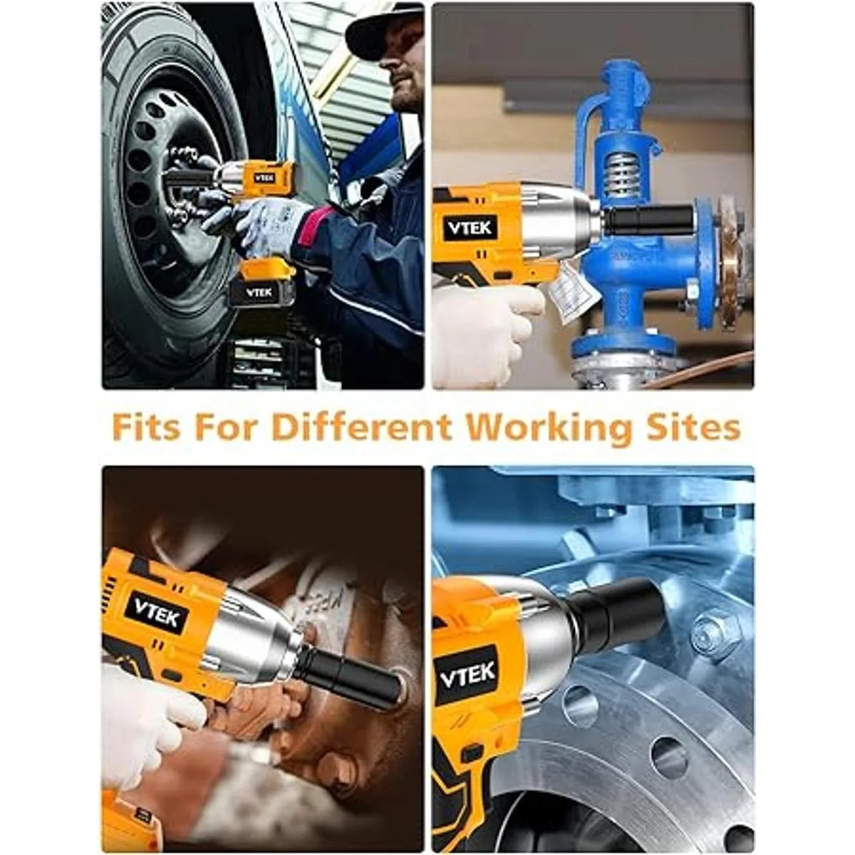 Motor sin escobillas: la llave de impacto inalámbrica VTEK con motor sin escobillas tiene un rendimiento y durabilidad excelentes. El motor sin escobillas no solo ofrece menos ruido y sin chispas. sino que también ofrecen la llave inalámbrica con una vida útil más larga.