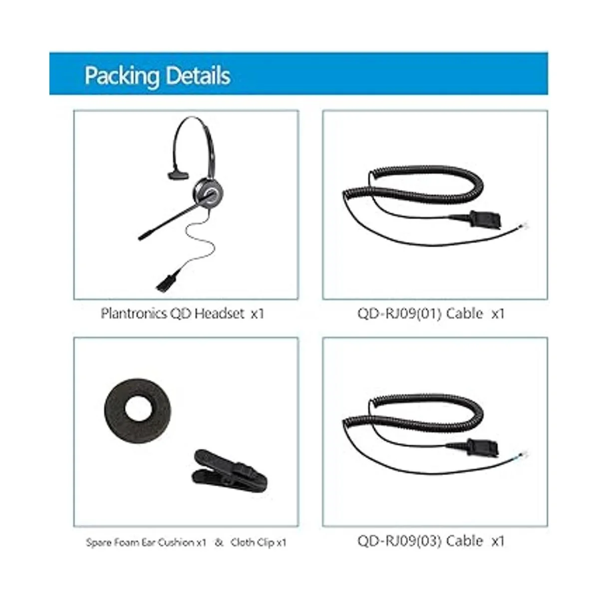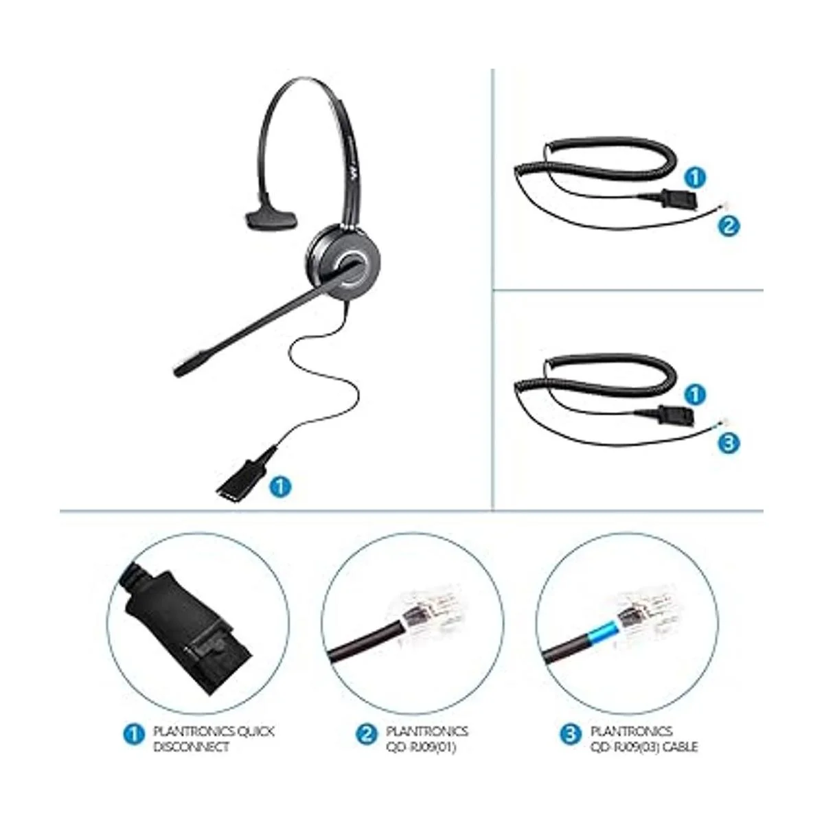 VTTelephoneHeadset Micrófono con cancelación de ruido QD Auriculares de desconexión rápida con cables RJ09 para teléfonos Polycom, Avaya, Yealink y Grandstream
