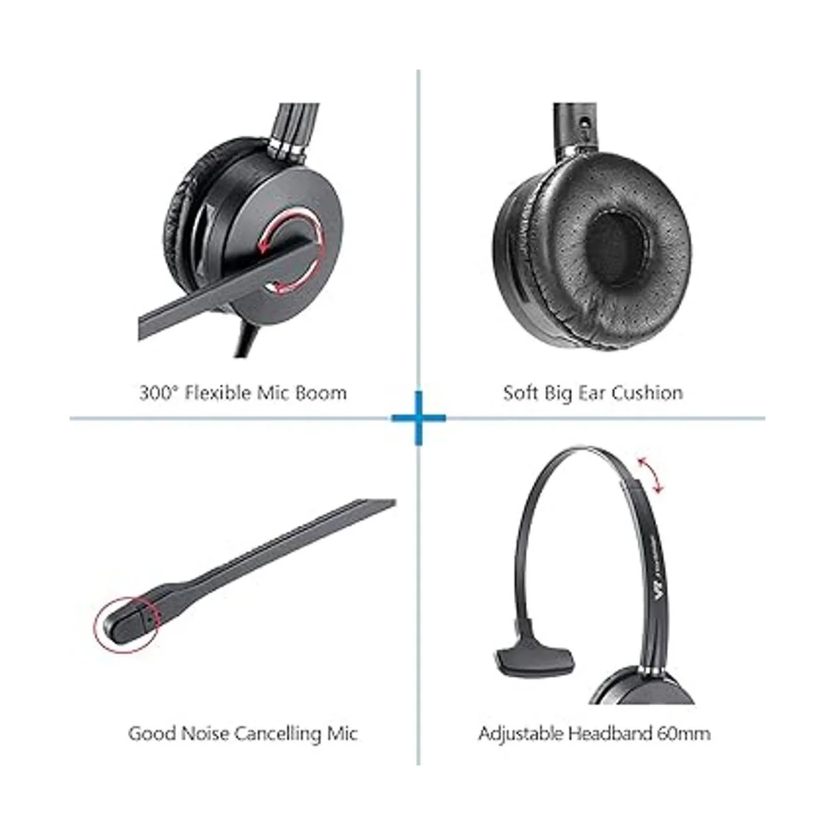 Comodidad durante todo el día: estos auriculares de centro de llamadas con grandes almohadillas de cuero sintético suave y diseño ligero garantizan comodidad durante todo el día. La diadema ajustable es adecuada para diferentes tamaños de cabeza y el brazo giratorio de 300 grados te permite encontrar un ajuste perfecto.