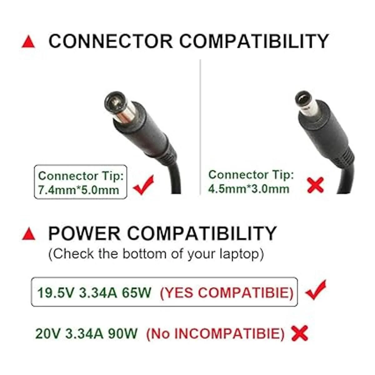 Salida: 19,5 V3,34 A65 W, entrada: 100 240 V 1 A 50/60 Hz, Conector: 0.291 in x 0.197 in; marca 100 nueva.