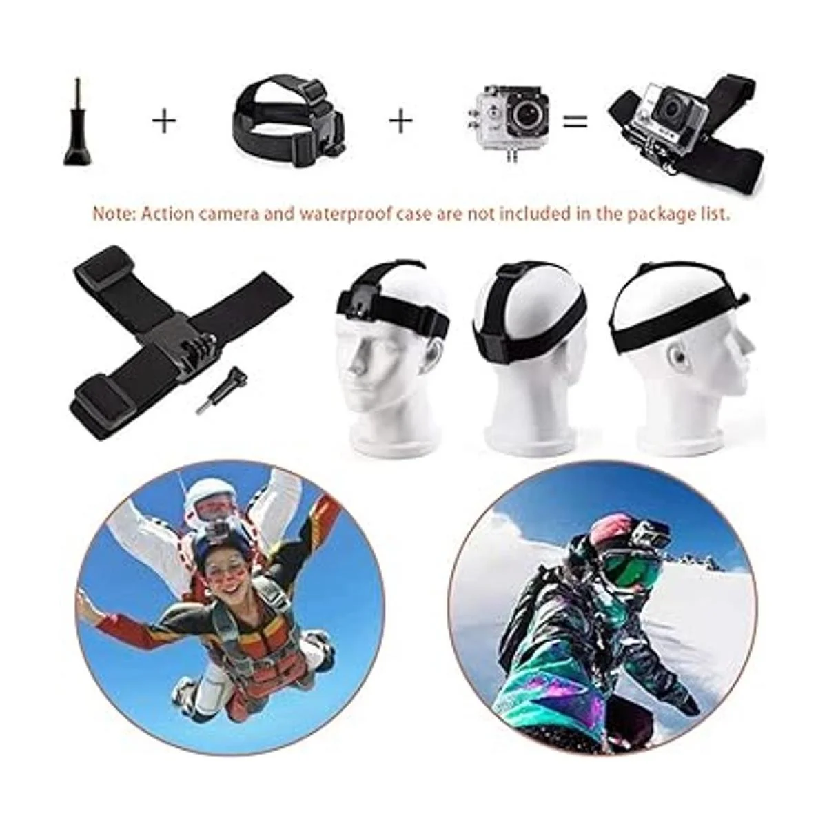 Soporte de correa para cabeza y pecho de cámara de acción: talla única. Ayuda a que tu cámara de acción tenga un disparo y grabación constante en el pecho, la correa del casco sujeta firmemente tu cámara en un casco para carreras de ciclismo de carretera, senderos de bicicleta de montaña, senderismo. Peso ligero, correa de diadema de cámara de acción con material de nailon elástico y diseño de goma antideslizante