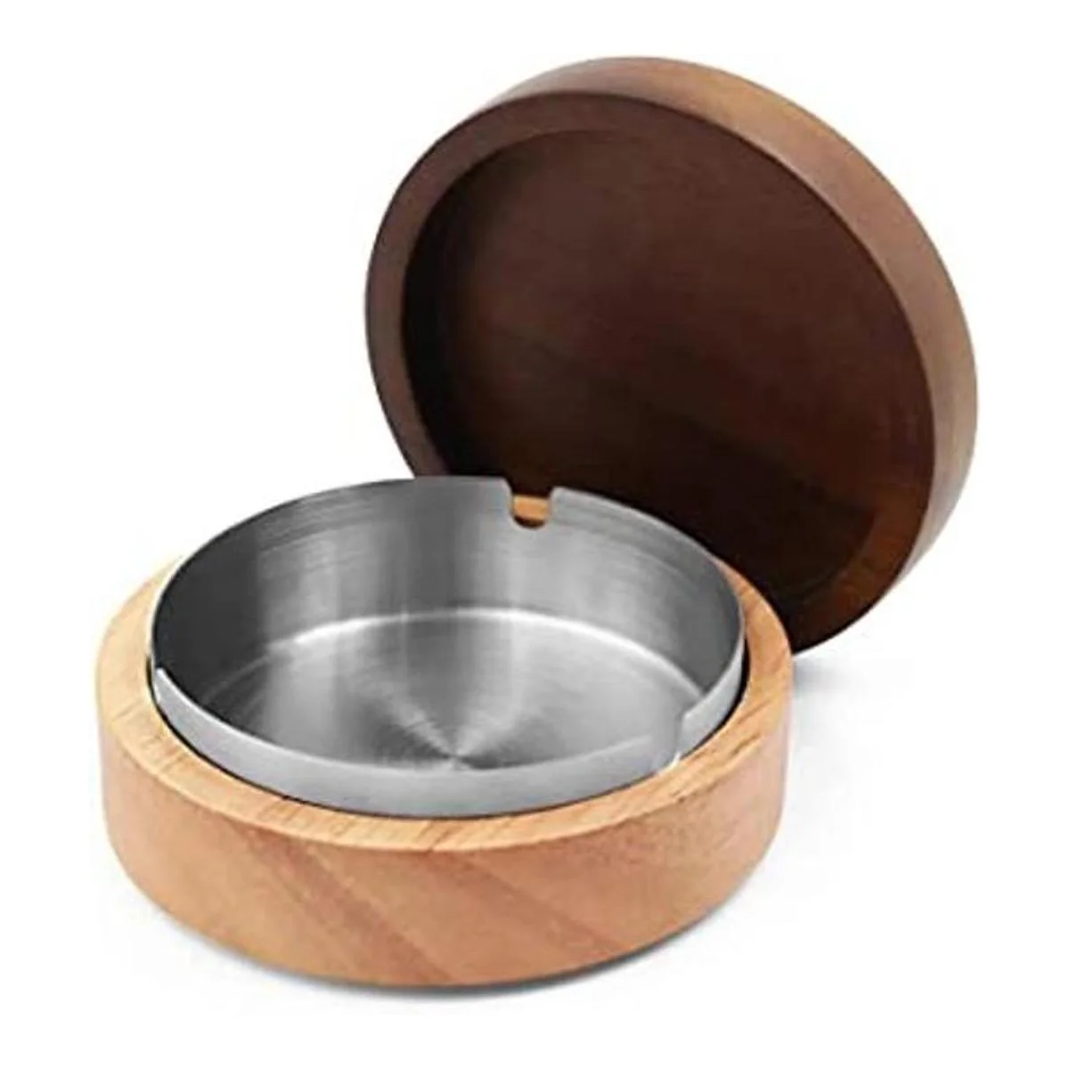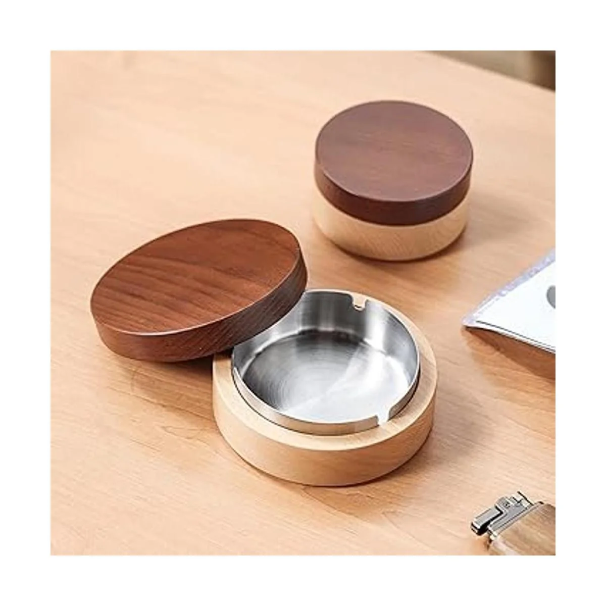 Estilo natural: el cenicero de madera tiene forro de acero inoxidable. El diseño de elegancia natural hace que sea muy moderno y elegante para adaptarse perfectamente a cualquier decoración