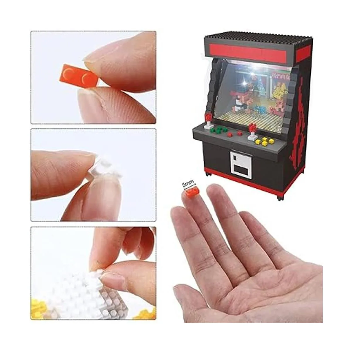 Este juego de construcción de 1060 piezas de mini máquina de juego trae de vuelta la escena clásica del juego de luchadores. Viene con una cadena de luz LED que puede decorar maravillosamente.