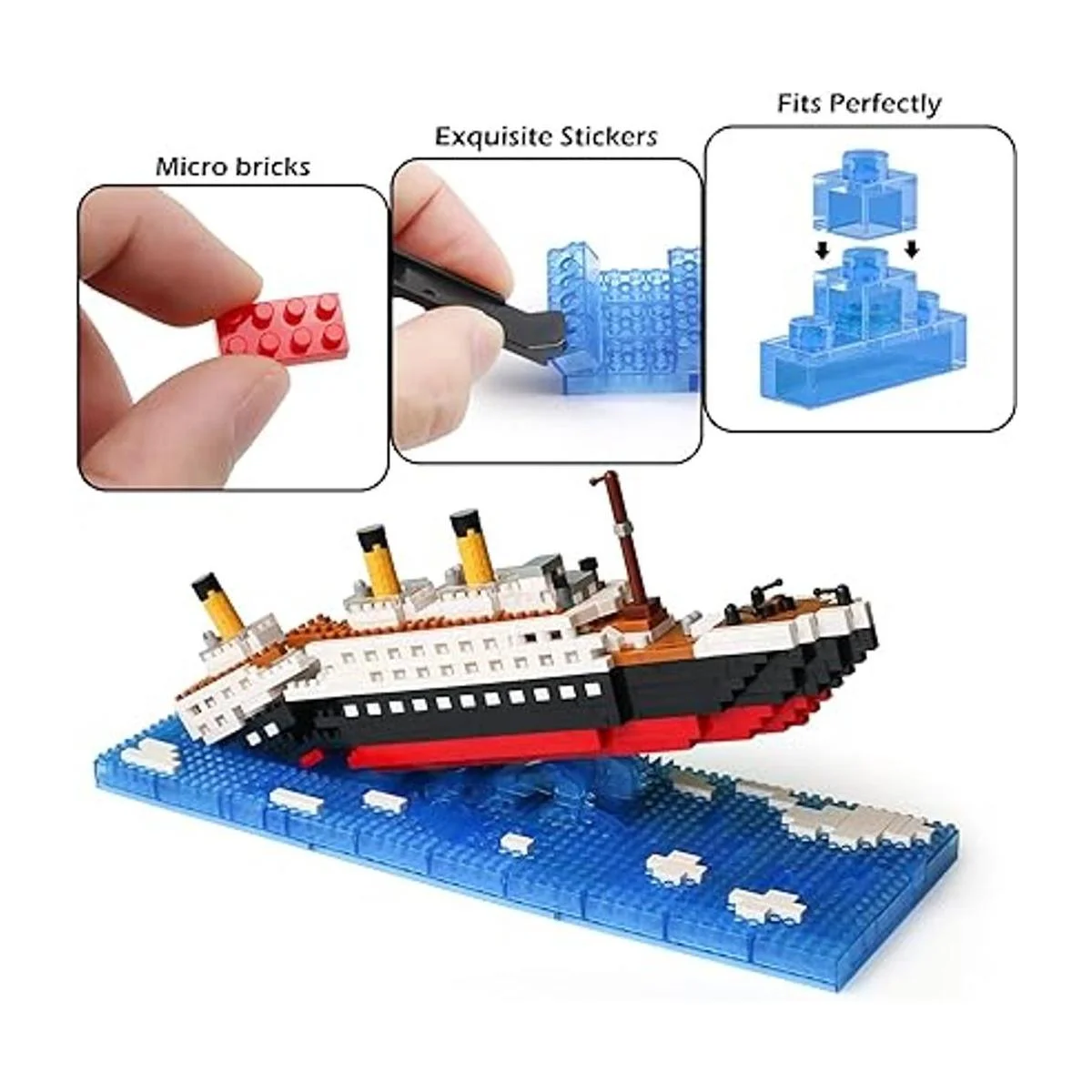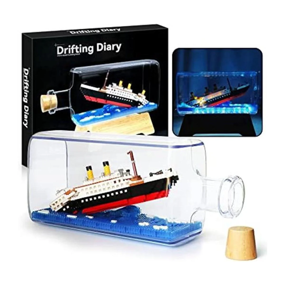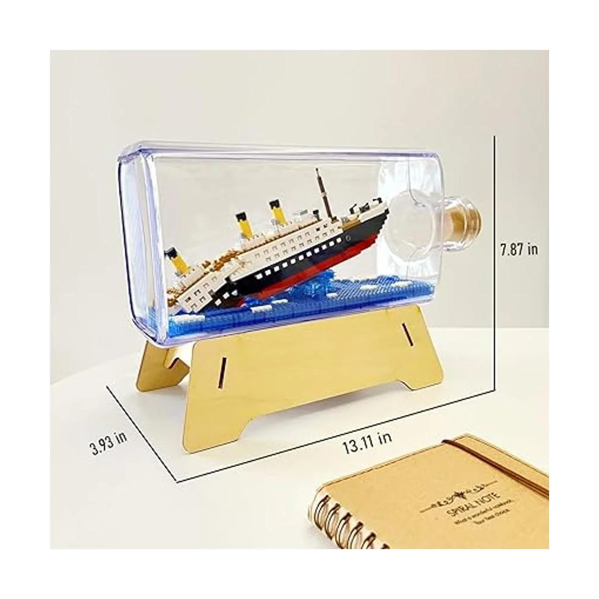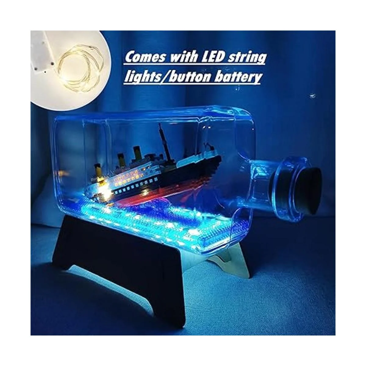 Vziimo Titanic in a Bottle Juego de construcción para adultos con kit de iluminación LED y vitrina, kit de microbloques de barcos hundidos de arquitectura genial para niños y adolescentes, regalo compatible con Nano 1040 piezas